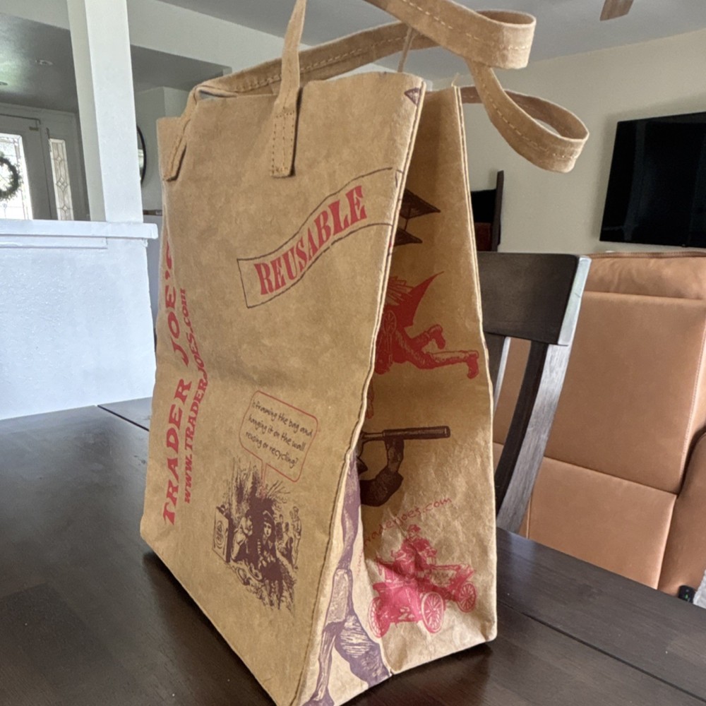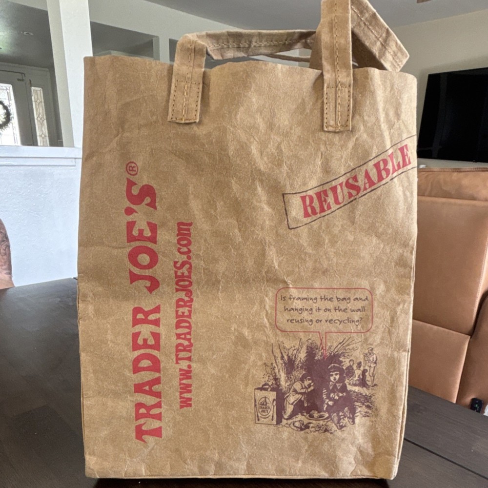 The Trader Joe's Washable Reusable Paper Shopping Brown Bag !! stylish and practical. Made of washable paper material. perfect for carrying groceries or other items while on-the-go. Discontinued limited edition Trader Joe’s bag! Tags are off, never used.