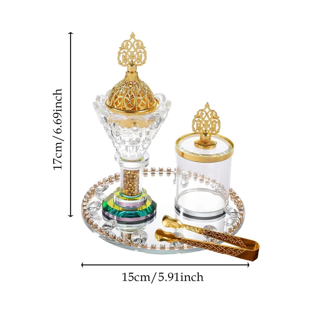 Home & Garden | Jewelry & Watches | Sporting Goods | Business & Industrial | eBay Motors | Toys & Hobbies | Health & Beauty Glass Incense Burner Set Censer Tongs Storage Jar Traditional Arabian Incense Description: 【Package Including】: Arabian incense burner set, including 1 incense burner, 1 tray, 1 tongs, 1 storage jar 【Delicate Design】: This traditional Arabian incense holder is designed with a lotus shape, has fine workmanship and details, is a nice table centerpiece, great for Ramadan decoration 【Premium Material】: This censer set is made of glass and metal material, transparent appearance, sturdy, not easy to break and ensures a long time to use 【Wide Applications】: This incense burner can be used as home decoration, handicrafts or classical furniture, etc. It is very suitable for living room, office, bedroom, meditation room, Spa, yoga, etc 【Nice Gift】: The incense burner set is a great gift for friends or family on Ramadan, holiday, housewarming, etc Specification: Material: Glass Iron Size Chart: 15cmx17cm/5.91inchx6.69inch Package Includes: 1 Incense Burner Set Note: Please allow slightly errors 1-2cm differences due to manual measurement. Payment Shipping Returns If you are bidding or ordering more than one item, the items will be combined into one order automatically thus you can pay altogether. If you want not to combine, please buy one and immediately pay one separately. Please pay what you win in 7 days. Unpaid Dispute will be automatically open if payment is not received after 7 days. If you pay the bill after received unpaid dispute, please email us to close the unpaid dispute. Because the unpaid dispute will not be closed automatically, and we may ignore it. The buyer is responsible for any applicable import duties and local taxes. Please verify with your customs before making your purchase. Please verify your address during checkout. We are not responsible for any wrong or undeliverable addresses. We are committed to give you the best customer service possible. If for any reason you are unsatisfied with a purchase, please contact us and we'll assist you with a prompt solution. Please let us work on the issues. We'd like to settle any problem in a friendly manner. Please do not open a case on eBay or PayPal, or leave any negative or neutral feedbacks directly! We always reply to messages within 2 business days (off-duty at weekend). Due to the difference of time zone between Hong Kong and your location, sometimes the answer will be delayed. If you do not get a response from us after 2 business days, please check your junk or spam mailbox. Unsatisfied product can be returned within 30 days from the delivery date . We can offer a full refund or exchange, but we are not responsible for return shipping cost. Please contact us to get a RMA number before sending out your return. Feedback: 1. Since your feedback is very important to our business's development, we sincerely invite you to leave positive feedback with four 5-Detailed Selling Rating (DSR) to us basing on your satisfaction with our commodity and service. It's just take you 1 minute. 2. Unfortunately, If you are planning to give us a neutral/negative feedback because of your bad buying experience with us, please contact us at any time so as to clear up your discontent and resolve the problem. Featured Products People always bought together with