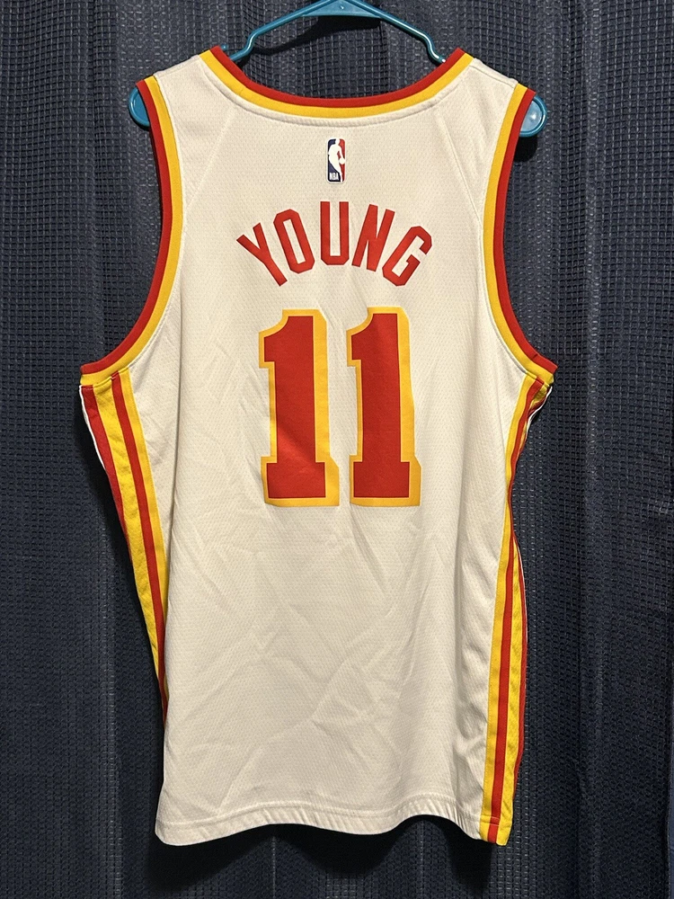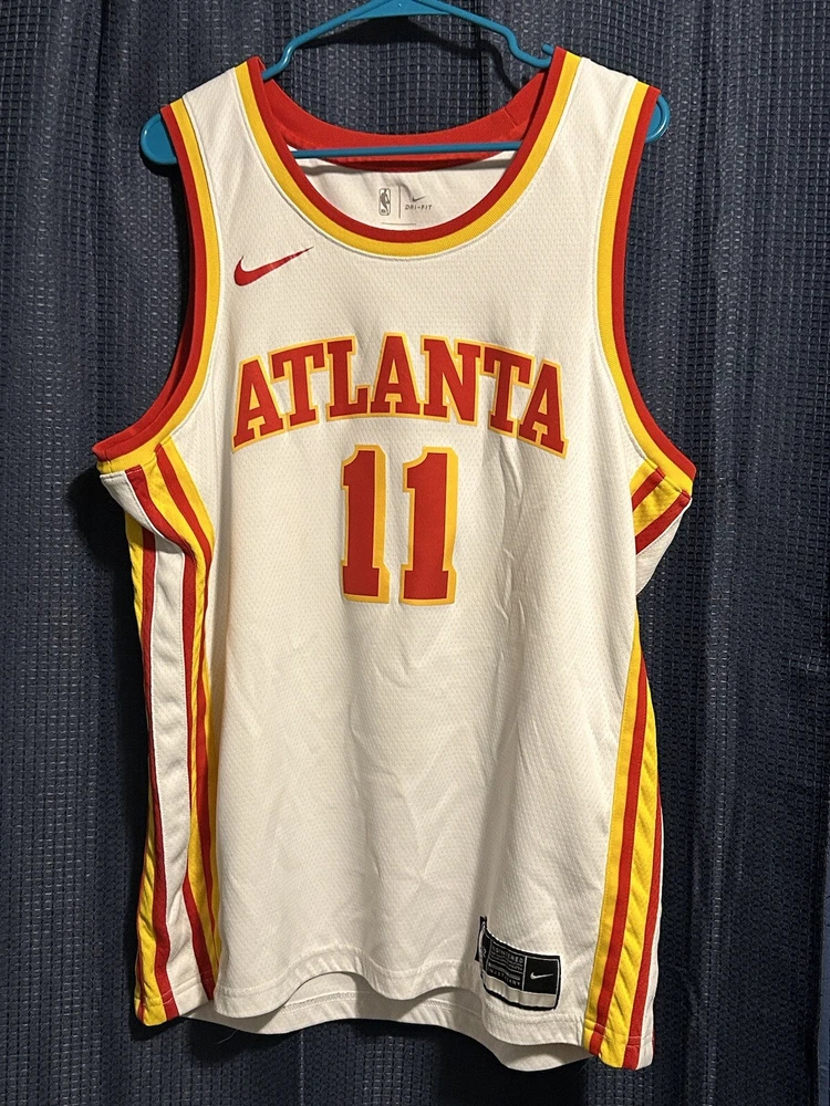 Show off your love for the Atlanta Hawks and their star player, Trae Young, with this Nike unisex adult jersey. The jersey features the team's colors of white and blue, as well as Young's name and number on the back. It is made of high-quality materials to ensure comfort and durability, and is available in size XL. This jersey is perfect for any fan of the National Basketball Association (NBA) and basketball in general. Whether you're cheering on the Atlanta Hawks or just looking for a stylish piece of fan apparel, this jersey is sure to impress. Don't miss out on the chance to own this one-of-a-kind Trae Young jersey.