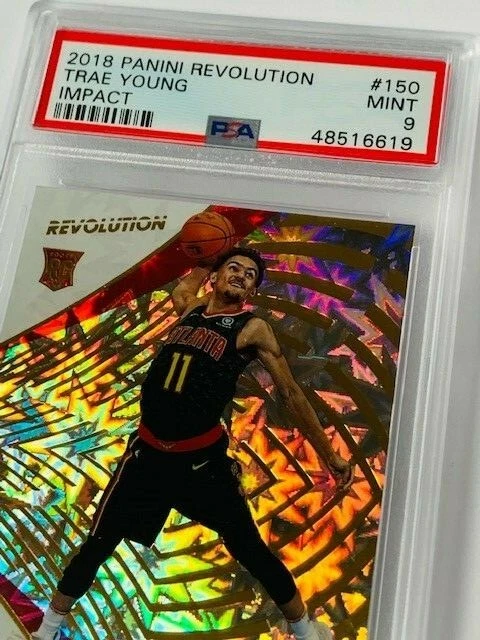 Absolutely awesome and highly collectible RARE Trae Young Rookie Card 2018 Panini Revolution IMPACT (less than 50 made) and graded a PSA 9 only 10 graded this high. See all pictures for amazing condition, size, and detail. No returns on sports cards as their value changes almost daily now. Check out my store for some of the rarest vintage collectibles online from all eras. Thanks for looking and have a great day! :)