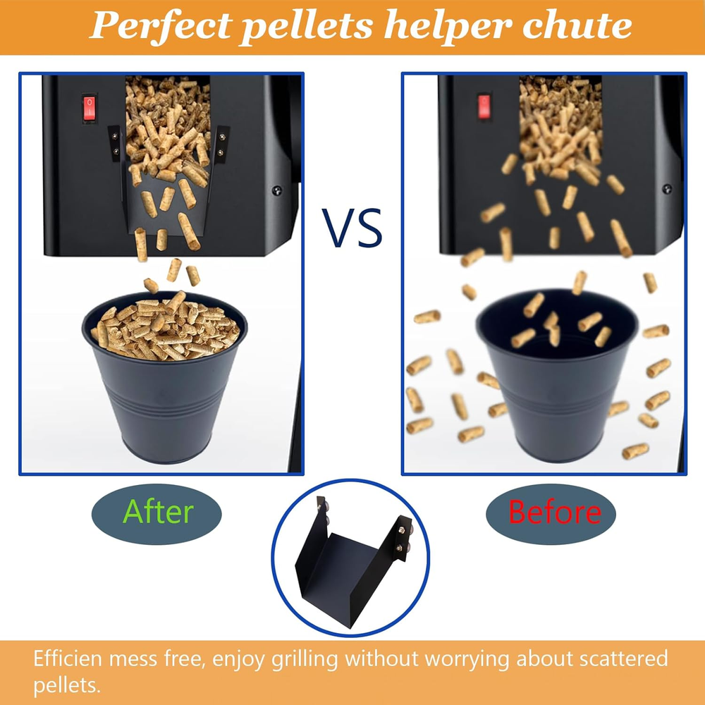 Fast Shipping On All Items 30 Days Money Guarantee Customer Support Excellent Service 100% Satisfaction Satisfaction Guaranteed Traeger Pellet Helper Chute - Magnetic Pellet Feeder for Pellet Smoker, Accessories for Ironwood 885, Pro Series 34, Pro 780 Grills Specification Item model number -1 Power Source No power required Color Black Item Weight 6.4 ounces Outer Material Carbon Steel Fuel Type Wood Model Name Pellet Helper Chute for Traeger Pellets Grill Form Factor elongated Product Dimensions 3 x 3 x 0.5 inches 3.0 inches x 3.0 inches x 0.5 inches. Weight: 6.4 oz Item Description 【Essential Pellet Auxiliary Chute】Tired of scattered wood pellets while cleaning your Grill? This outdoor grill pellet auxiliary chute is an accessory specially designed for the barbecue grill to discharge wood chips, The wood pellets can be easily gathered and slid into the bucket, No need to waste time cleaning up the fallen pellets. 【Easy to install】This pellets helper chute is easy to use. When using, just install the chute under the sawdust particle discharge port of the grill. Pellets helper chute magnetic can bear more than 3kg/6.6 ounces, which can be perfectly Fits the discharge port to easily clean sawdust particles. 【Maintain Cleanliness】Keep your grilling area tidy and avoid wasting pellets with this Magnetic Pellet Helper Chute accessory. It is also equipped with a cleaning brush to clean the magnetic pellet helper chute and keep the magnetic pellet Helper chute clean and tidy. Enjoy grilling without worrying. 【High quality materials】The pellets helper chute is made of aluminum alloy material, strong and reliable. It will not be damaged by impact or high-frequency use, ensuring a reliable and long-lasting solution for your pellet cleanup needs. 【Compatible】This barbecue stove accessory is suitable for various types of traeger grill barbecue stoves, with Traeger Ironwood 885, pro series 34, pro series 22, pro D2 575, pro 780, ironwood 650, centre-22-34. Product description About us We offer the best prices around on high quality products. Our E-store includes media such as books, movies, music and games while offering electronics, toys, sporting apparel, clothing, tools, general home, garden items and more. Shipping We are always working hard to ensure your package arrives as soon as possible. Please understand that some factors like weather, high postal traffic, and the performance of shipping companies are outside of our control. We offer free shipping to the lower 48 states and ship within 2-3 business days of payment, usually sooner. We do not accept P.O. Boxes. Please provide a physical address. For shipping outside of the continental USA, we only use eBay's Global Shipping Program.The item is shipped to KY and then sent to the rest of the world. International customers are responsible for all duties and taxes. Continue to check out to calculate costs for shipping the item to your country. Messages regarding eBay's Global Shipping Program MUST be directed at eBay EXCLUSIVELY. Returns We offer a 30-Day Return Policy on items in which you are not completely satisfied with. You have the option of a full-refund or an exchange of the item. No returns are available on items shipped outside of the USA Satisfaction We try over very best to make sure every customer is completely satisfied. If there's a problem, message us! We're happy to help. Payment Options Shop With Confidence