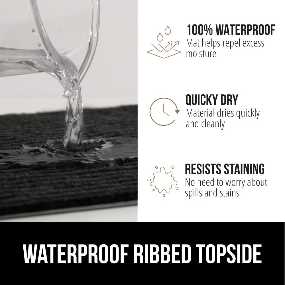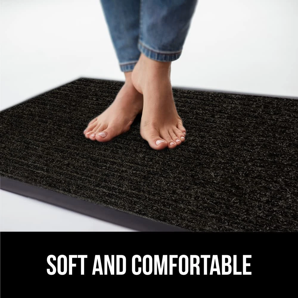 BUILT TOUGH FOR HIGH TRAFFIC: the Traffic Guard doormat is ultra strong and built tough to withstand high foot traffic; constructed with a high quality textured rubber backing and raised fabric topside to help scrape off dirt and debris; thick and plush topside is gentle on bare feet, but durable for boots WATERPROOF RIBBED TOPSIDE: ultra absorbent and 100% waterproof, the mat's surface helps to capture excess water and moisture; plus, premium fabric dries quickly and resists staining and fading for long lasting use DEEP GROOVES CAPTURE MUD AND MOISTURE: designed with a raised ribbed surface to help capture mud, dirt, moisture and debris deep within its grooves; perfect for those rainy and muddy days LOW PROFILE EASILY CLEARS DOORS: mat's low profile design measuring .25 inches thick allows nearly any low clearing door to pass over with ease INDOOR AND OUTDOOR USE: a great option for both indoors or out; mat's are extremely durable and can be used in a variety of locations at home or at work such as entryways, porches, patios, mudrooms, garages, and more; measuring 29 by 17 inches for a perfect fit
