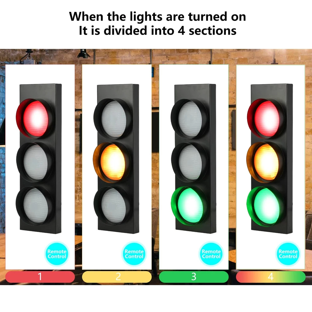 Description: LED Traffic Light Wall Decor Fun Wall Lamp with Remote Control For home decoration, holiday party decoration, decoration, gift, also suitable for kitchens, bedrooms, dining rooms, offices, bars and restaurants, etc. Specification: Mode: 4(red, yellow, green, red-yellow-green) Material: +Glass Item Size: 470*140(mm) / 18.5x5.5(inch) Power: 5W x 3 (total 15W) Voltage: 110-220(V) Package Dimension: 54*20*15cm/21.2*7.8*5.9inch Package Weight: 2.2kg/4.8lbs The package includes: 1 x Traffic Light Wall Lamp 1 x Remote Control 1 x Operation Description 1 x Install Accessories 🚥 Remote Control Led Decorative Wall Lamp: The traffic light lamp controlled by remote control is more convenient and intelligent; the lighting effect is divided into four types, red, yellow, green, red-yellow-green. Size: 470*140(mm) / 18.5x5.5(inch). Batteries are not included. The battery model for the remote control is 23A. 🚥 Frosted Glass Lampshade: The lampshade of the traffic signal light is made of frosted glass material, which has an elegant and high-end sense when it is not on. When the light is on, it highlights the mysterious industrial style, which is very creative. 🚥 Long Service Life: The average service life of this led wall light is up to 3000 hours, high-efficiency, high-brightness LED light source, wider viewing angle, frosted glass lampshade design, uniform light intensity distribution, adding a simple and elegant atmosphere to your residence. The power of 3 lamps is 5W x 3 (total 15W), the voltage is 110-220(V), and the cable is an American plug wire with a switch. 🚥 Fun & Room Decoration Light: This metal industrial style wall decor light is widely used in home decoration, holiday party decoration, decoration, gift, also suitable for kitchen, bedroom, dining room, office, bar and dining room, etc. 🚥 Easy installation: LED indoor wall light, can be installed horizontally or vertically, adopts integrated design, adopts wall-mounted type (including lamp wall hook), and the installation is very simple. Installation accessories and installation instructions are included in the package. Intelligent control circuit, overload protection current is stable, to ensure safe use.