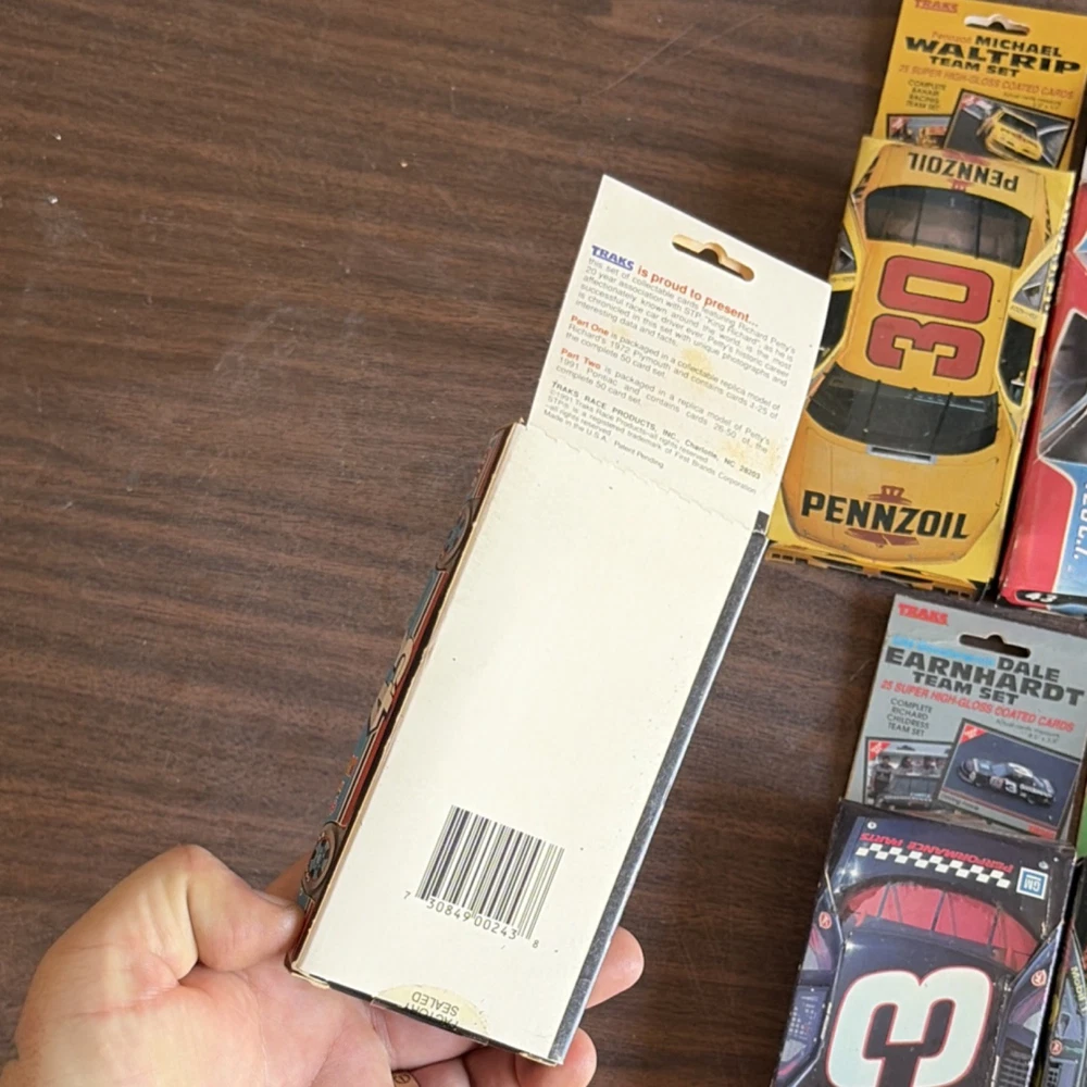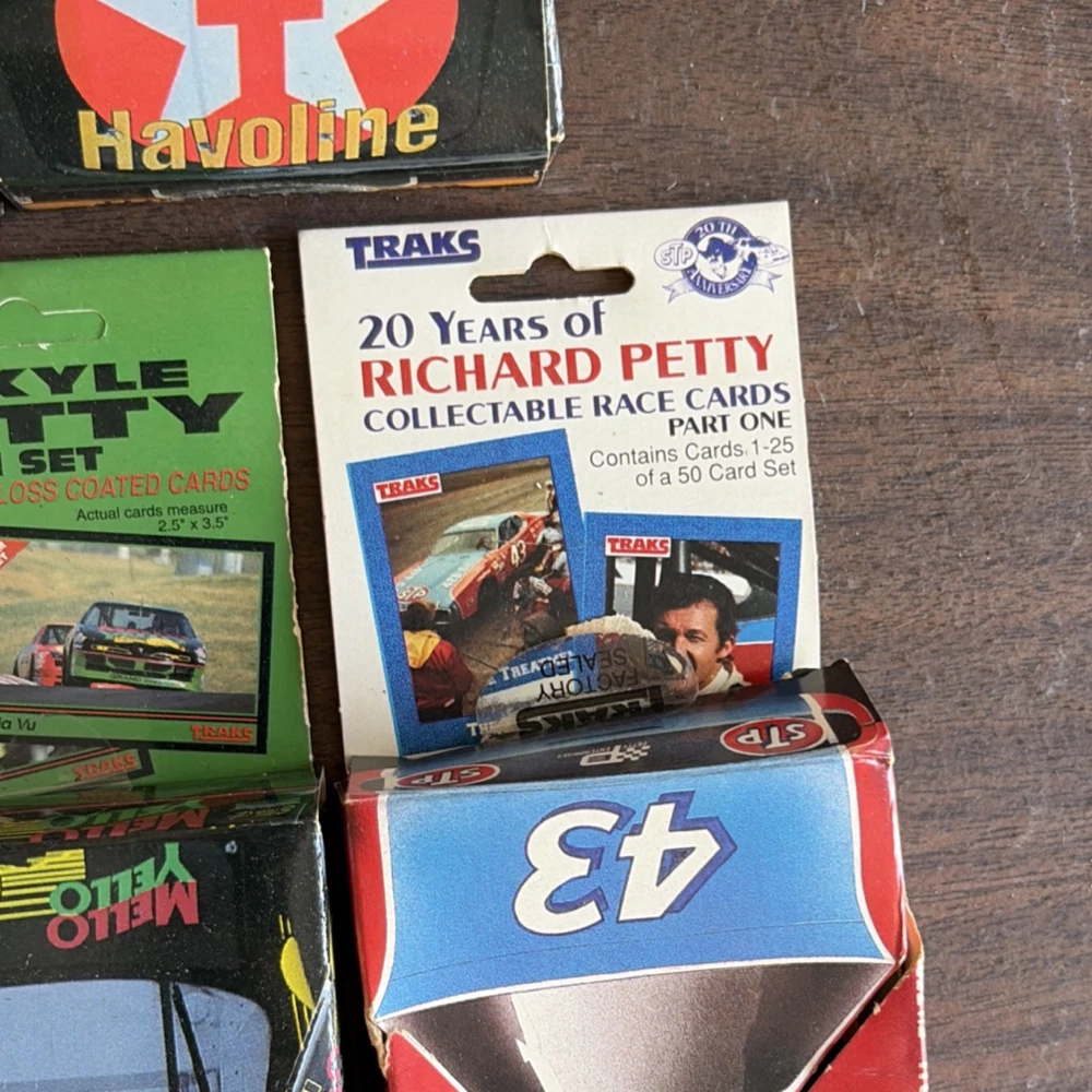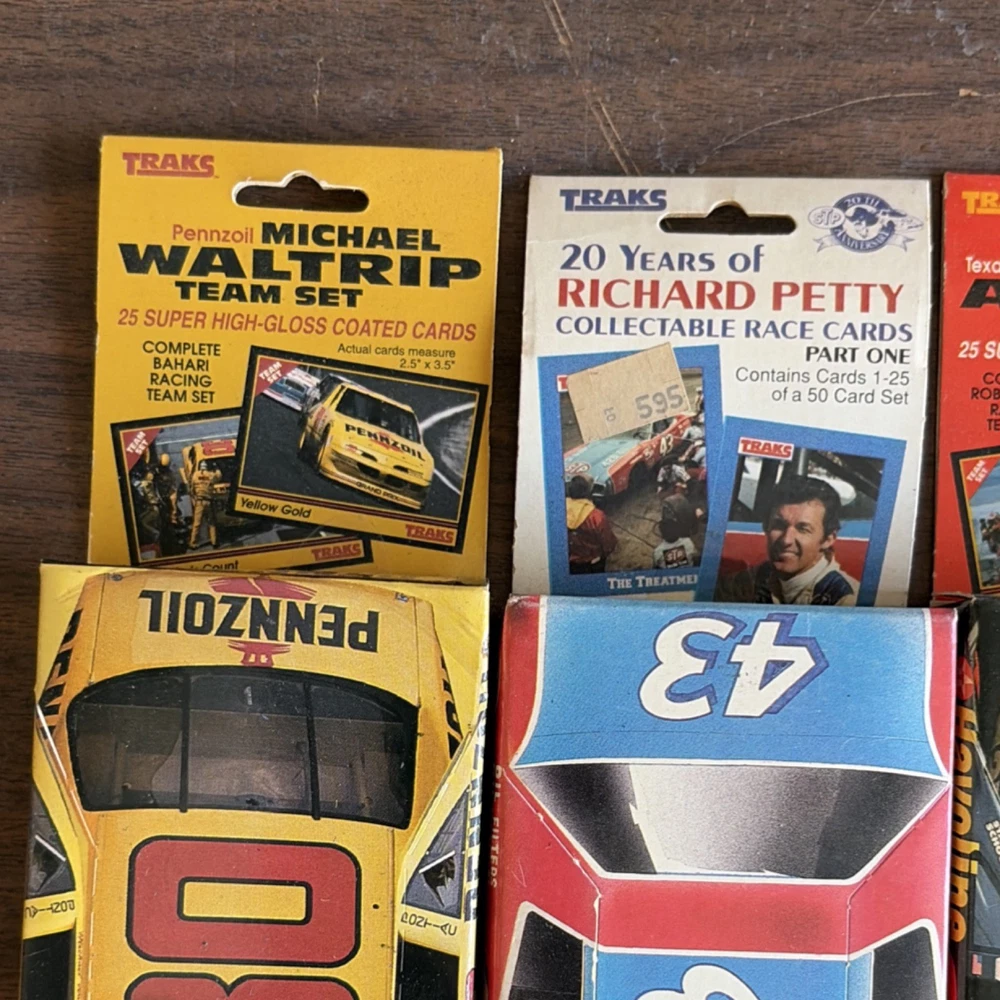 Type:Sports Trading CardTeam:Bahari Racing, Richard Childress Racing, SABCO Racing, Robert Yates RacingMaterial:Card StockMPN:30859002436Sport:Auto RacingCard Size:2.5 x 3.5 inCountry of Origin:United StatesNumber of Cards:25Player/Athlete:Richard Petty, Dale Earnhardt, Kyle Petty, Michael Waltrip, Davey AllisonSet:20 Years of Richard Petty Collectable Race Cards, Pennzoil MICHAEFeatures:Super High-Gloss Coated CardsConfiguration:BoxManufacturer:Traks