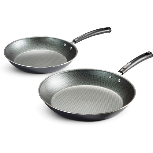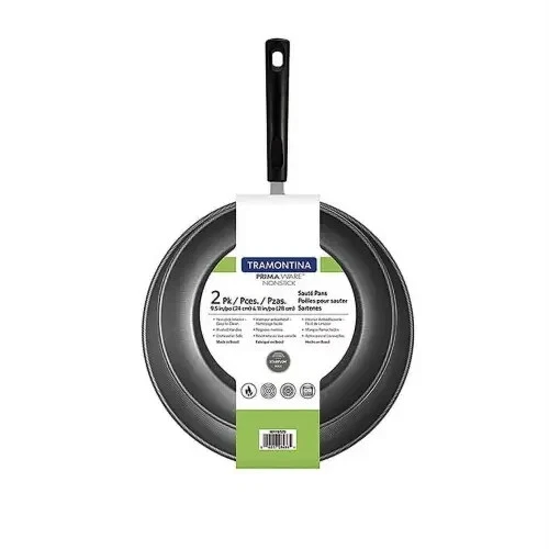 Product details Tramontina's PrimaWare 2-Piece Steel Gray Nonstick Saute Pan Set contains handy sizes of 9.5-inch and 11-inch Saute Pans, which are useful for most everyday cooking tasks. The patterned interior nonstick coating ensures easy cooking and simple cleanup. The different size saute pans are perfect for preparing several flavorful dishes from omelettes and countless other breakfast foods to vegetables and several dinner entrees. These dishwasher safe saute pans make prepping dishes a breeze. These aluminum saute pans are lightweight and can be used by any level meal preparation person. Riveted, stay-cool handle decreases the chance of burning yourself when you are preparing dishes. This steel gray nonstick saute pan set will complement numerous kitchen decors. Tramontina PrimaWare 2-Piece Nonstick Sauté Pan Set Steel Gray Sauté pan set contains handy sizes to accommodate a variety of cooking tasks Riveted, stay-cool handles Set includes: 9.5in sauté pan and 11" sauté pan Patterned gray interior nonstick coating for easy cooking and clean up Compatible with electric, gas and ceramic glass cook tops Dishwasher-safe Model 80119/570DS
