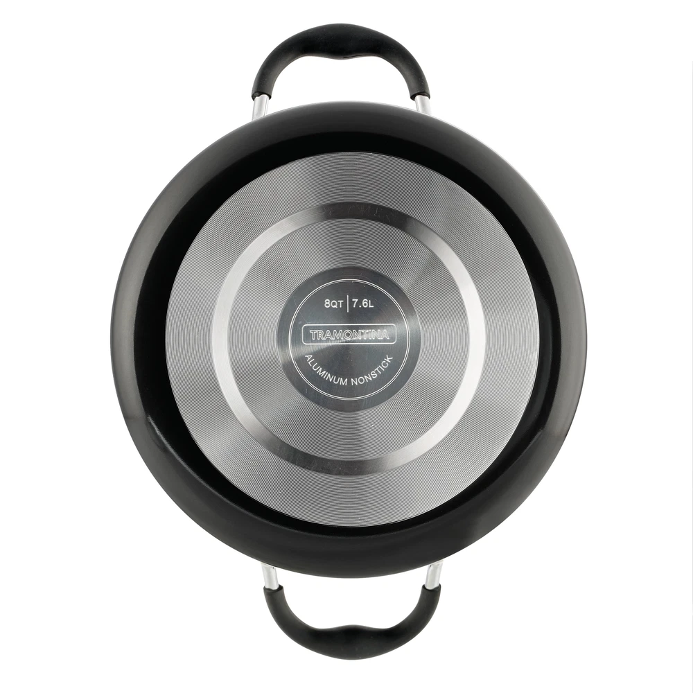 Tramontina's Porcelain Enamel Aluminum 8 Quart Nonstick Covered Stock Pot is ideal for cooking pasta, preparing soup, boiling veggies or simmering chili. Cooks will be pleased by its heavy-gauge aluminum construction, quick heat distribution, and durable porcelain enamel exterior that is resistant to chips and scratches. Its high-performance PFOA-free nonstick interior provides effortless cooking and easy cleanup. The heat- and shatter-resistant tempered glass lid allows you to monitor your cooking progress, while the ergonomically designed handles provide added support when handling a filled pot. This dishwasher-safe cookware is compatible with gas, electric and ceramic glass cooktops, is oven-safe up to 350 F / 176 C, and offered under a Lifetime . ? PFOA-Free, Nonstick Interior for effortless cooking and cleanup ? Durable Porcelain Enamel Exterior ? Heavy-Gauge Aluminum provides even heat distribution ? Tempered Glass Lid ? Stainless Steel Handles with Soft-Grip Silicone Accents ? Compatible with gas, electric and ceramic glass cooktops ? Oven-safe up to 350 F / 176 C ? Dishwasher-Safe ? Tramontina 8 Qt Style Gray Non Stick Covered Stock Pot