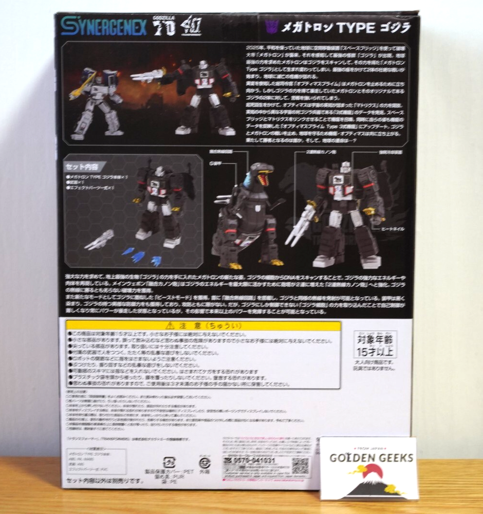 Welcome to Golden Geeks, Our Items are 100% Authentic From Japan Description ・Brand New A Dream Collaboration Between Godzilla and Transformers! The Decepticon leader, the Emperor of Destruction Megatron , appears in a new form powered up by the might of Godzilla! Megatron, in his quest for ultimate power, has acquired the strength of the most powerful creature on Earth—Godzilla. This new form has been brought to life as a figure, showcasing a transformation powered by scanning Godzilla’s DNA to replicate his immense energy and physique. The figure features a premium finish with special markings and paint applications, allowing Megatron to transform into a beast mode inspired by Godzilla’s coloring. With multiple points of articulation, the figure allows for dynamic posing in both robot and beast modes. Additionally, the set includes translucent effect parts that can be attached to the mouth in beast mode to recreate Godzilla’s iconic heat ray attack. [Set Contents] Megatron TYPE-Godzilla figure (1) Weapon (1) Set of effect parts (1) Instruction manual (1) Policy Payment You can use various payment methods based on eBay Managed Payments. Import duties, taxes and charges are not included in the item price or shipping charges. These charges are the buyer's responsibility. Cancellations & Returns Cancellation or returns will be accepted only if the item has an obvious problem that was not mentioned in the listing description. If that, please let us know within 3 days you got the item. Buyer is responsible for shipping costs and any charge incurred shipping products back. International Buyers Import duties, taxes and charges are not included in the item price or shipping charges. These charges are the buyer's responsibility. Please check with your country's customs office to determine what these additional costs will be prior to bidding/buying. These charges are normally collected by the delivering freight (shipping) company or when you pick the item up - do not confuse them for additional shipping charges.
