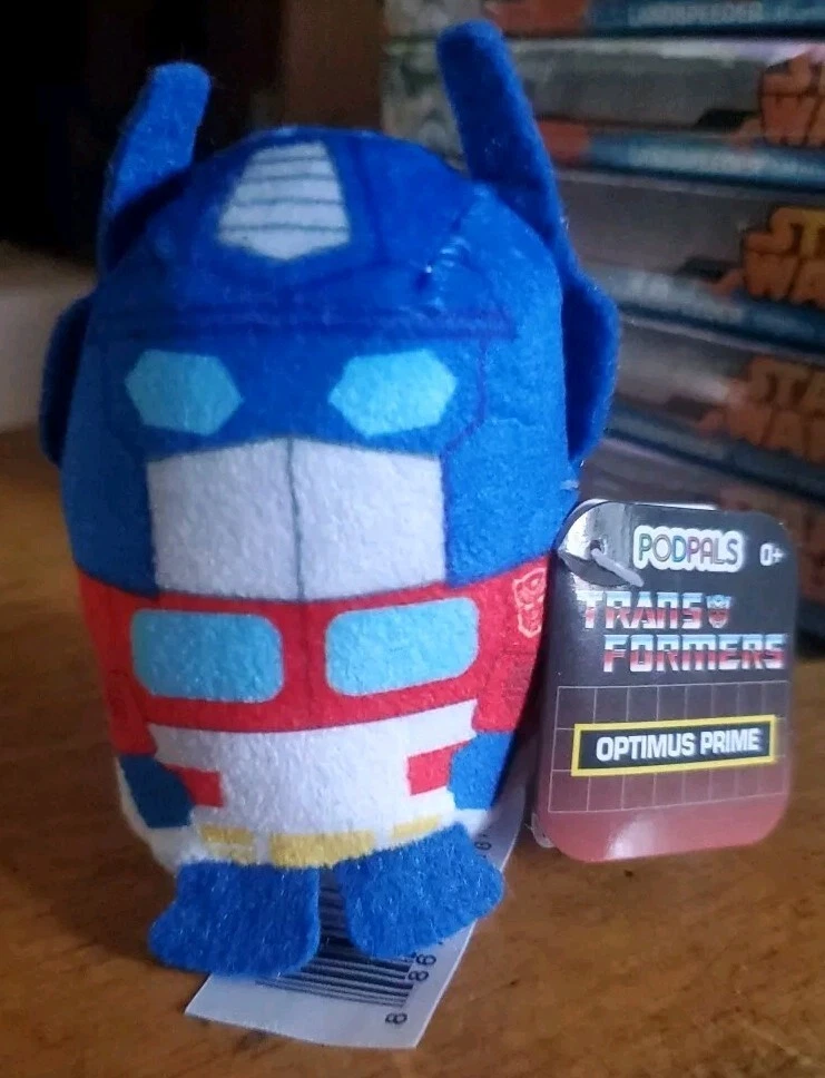 The Transformers Optimus Prime Podpals is a 3" mini plush toy from Just Play, featuring the iconic character from the Transformers series. This colorful multicolor plush is perfect for everyday play and collecting. With its small size, it is easy to carry around or display as part of a Transformers collection. The toy is new with tags, making it a great addition for fans of the Transformers franchise. Thanks for looking