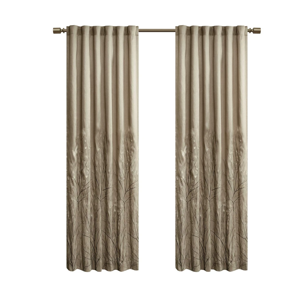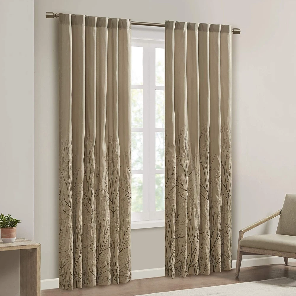The Andorra Single Window Panel Combines Style And Nature In The Best Way. A Striking Tree Branch Design Is Embroidered On Beautiful Faux Silk, Creating Alluring Contrast And Dimension. The Panel Features Added Lining For More Privacy And Better Drapability, While The Luxurious Sheen Provides A Touch Of Sophistication To Your Decor. Hang Using The Rod Pocket Top For A More Casual Style Or By The Back Tabs For A Crisp, Tailored Look. Fits Up To A 1.25X20 Diameter Rod. Design - A Striking Tree Branch Design Is Embroidered On Beautiful Faux Silk, Creating Alluring Contrast And Dimension, Combines Style And Nature In The Best Way Feature - Added Lining For More Privacy And Better Drapability, while The Luxurious Sheen Provides A Touch Of Sophistication To Your Décor Include - 1 Single Window panel:50"W x 84"L, as shown in image - Need to purchase 2 curtain Panel for each Single Window for standard coverage. Easy care - Machine washable. Due To The Fabrication And All Over Embroidery Design, Some Texture And Crinkle Maybe Left After Steaming (Steam Only, Do Not Iron)