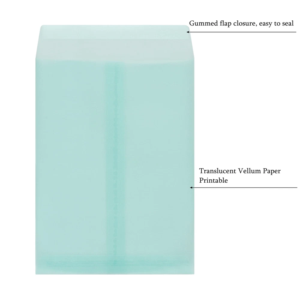Translucent Paper Bags 4 3/4 x 6 1/2, Vellum Envelopes A6 Self Seal for 4x14 Cards, Wedding Confetti Toss Bags, Invitations, Photos, Graduation, Small Business, Party Favors, Gift Wrapping, Pack of 50. High Quality Paper Bags/Envelopes: Pack of 50. Each bag is made of high-quality 100gsm vellum paper, Semi-Transparent elegant paper envelopes. Colored Envelopes: Light Aqua, we have 12 colors available. Ideal for printing customized marks and logos. The translucent paper makes a superior quality of the prints, which looks very classic. Take a look at our sample picture and you will surely love it! Bag Dimensions: Measures 4 3/4 x 6 1/2 inches (not include flap). Flat and Not Gusseted bottom Multipurpose: Great for 4x6 cards, wedding confetti toss bags, invitations, photos, graduation, small business, party favors, gift wrapping, all occasions: birthday favor, anniversary, weddings, baby showers, holidays and more! Customer Commitment: We stand behind our Translucent Paper Bags set with a dedication to quality, ensuring your complete happiness with every purchase. offers a range of sustainable and ecological products that are both stylish and affordably priced. Our commitment ensures you receive exceptional merchandise while contributing positively to environmental conservation.