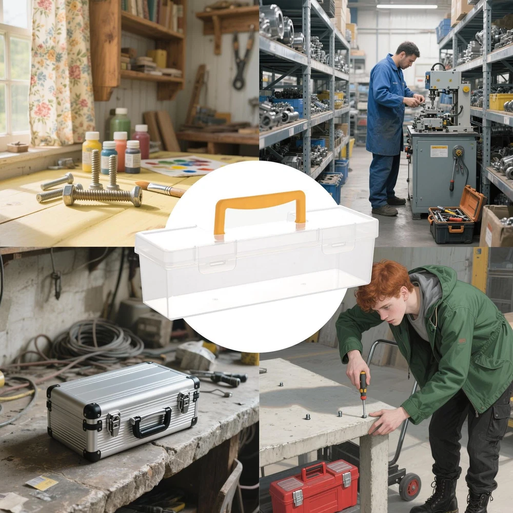 Tool Box with Transparent Lid Tool Box Hardware Storage Organizer Small Parts Product Description Bullet Points: Optimized Visibility: Reduces search time with transparent design for clear visibility, enabling quick tool identification and organized storage with our tool organizer box Adjustable Storage Space: Featuring modular storage and an adjustable layout, this organizer arranges tools by size to maximize space efficiency in any environment Sturdy PP Framework: Crafted from solid PP material, this organizer resists collisions and assists robust usage in various environments effortlessly with our small tool box organizer Effortless Portability: With its well-designed ergonomic handle assuring a secure and comfort-focused grip, this small parts organizer assists effortless single-handed movement, enhancing ease of transport across any workplace or environment effectively Multi-Purpose Fit: Designed to fit standard tools, such as screwdrivers and wrenches, assuring broad adaptability for organizing accessories in both home and workshop environments Transparent parts organizer case provides efficient storage for small items like screws, nuts, terminals, and beads. Ideal for garage, workbench, or craft areas, it keeps tools such as wrench, pliers, ratchet, marker, thread, fishing supplies, and electronics neatly divided. Product size: 12X10X36cm/4.72X3.94X14.17in Applicable people: general purpose Material: PP Capacity: 1500ml Storage scene: storage room Features: large capacity, transparent, wear-resistant, and drop-resistant Note: Due to different lighting and screen settings, the item color may be slightly different from the picture. Due to different manual measurements, please allow a 1-2cm difference in size. Product list: Tool box * 1 piece Payment 1.PayPal is a preferred Payment method. 2.You can make a Credit payment via Paypal.Paypal will let you use MasterCard,Visa to pay. 3.Payment should be completed within 3 days after auction closed, or unpaid dispute will be filed for an closing auction.An unpaid case will be filled after 4 days. Delivery details 1. We ship to many countries. 2. Delivery Time: Ship from China via Speedpak to US (takes 8-12 days) Ship from China via others shipping method to other countries (takes 15-60 days) 3. If you want to choose another address, please leave us a message on ebay.Please check your shipping address carefully before checkout,it can't be changed if order completed. Seriously promise:Refund or resend will be offered if item still not arrive in 7-10 business days. Just send us an email,we will give you a satisfied solution as soon as possible. Return policy 1.All item comes with Basic 3 Months Sellers Warranty, if item defective in 3 months,We will offer replacement without extra charger (including shipping fee) After we receive the defective item. If item Defective after 3 Month, Buyers can still send it back, We will contact suppliers or Manufactory for Warranty. Buyers Might Need pay the Shipping fee For resend the replaced item. 2.If item DOA(Dead of Arrival), Buyers can return it in 30 Days, we will replace it with new item after we receive DOA item. Please Contact us Before you sent the item back. 3.All item can be returned for exchange only. The buyer has responsibility for all return shipping including DOA or defective return. About Feedback When you receive the item and satisfied with the product, please leave positive feedback and 5 scores DSR. We will leave a 5 Scores DSR feedback for you. If, for any reason you are not satisfied with your purchase, please contact via Ebay Message and we will do our best to resolve it. Please don't leave neutral or negative feedback without any communition with .