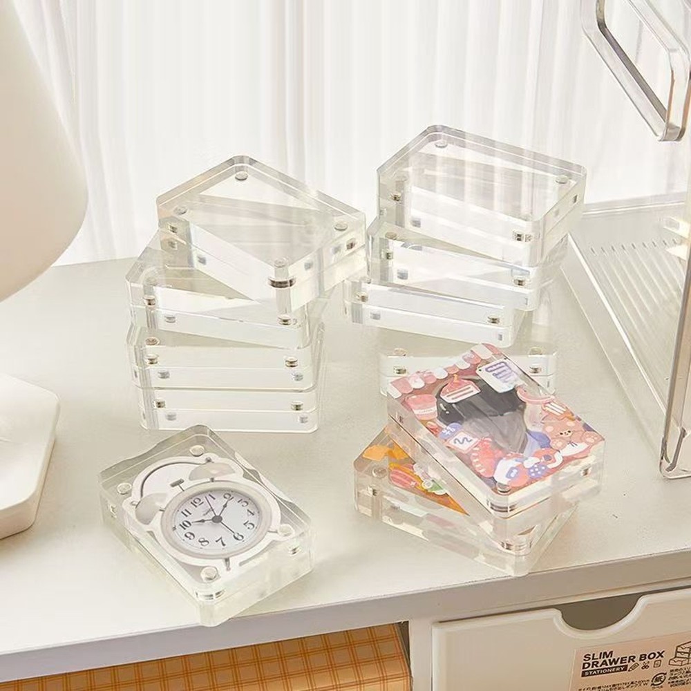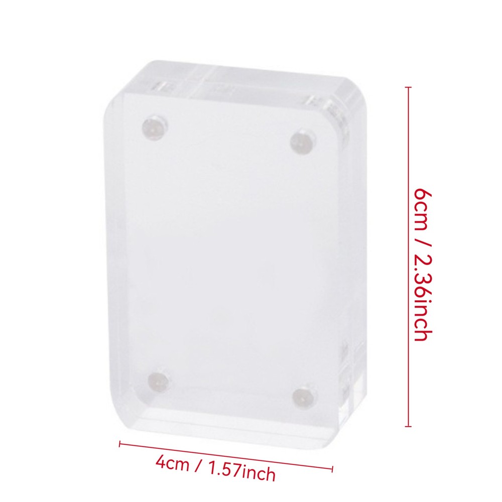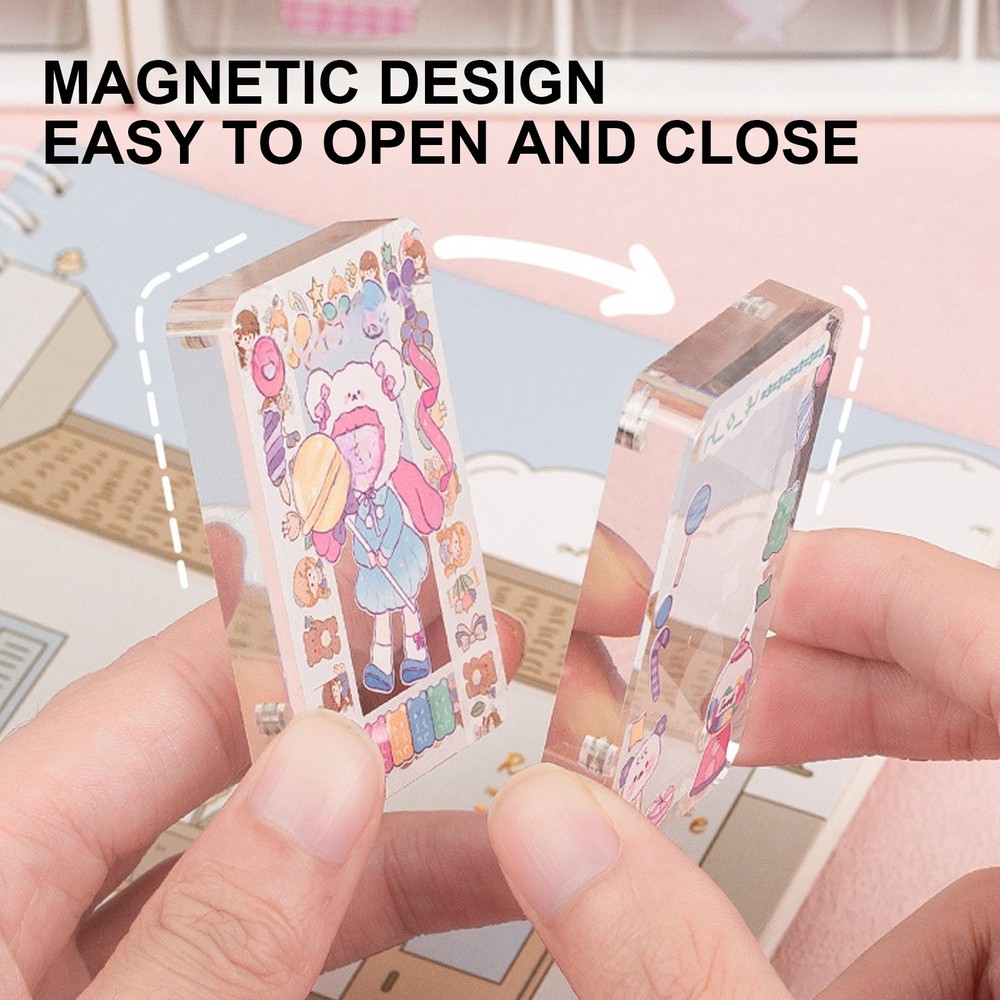 Product Description: A Clear Way to Protect and Display Your Favorite Cards This acrylic card holder offers a practical solution for storing and showcasing collectible cards while allowing creative customization. The simple yet functional design combines visibility with protection for various card types. Key Features: Protective Acrylic Construction Made from transparent acrylic material that helps display card details Smooth edges with rounded corners for safe handling Convenient Magnetic Closure Built-in magnets allow easy opening and secure closing Helps maintain cleanliness by reducing dust exposure Enables quick card access when needed Versatile Usage → Display collectible cards (photo cards, trading cards, etc.) → DIY customization with stickers/washi tape → Memory keeping for special occasions → Small art piece presentation Suggested Uses: • K-pop photo card protection • Trading card organization • Scrapbooking projects • Small memorabilia display Package Includes: 1 × Acrylic card case (Note: Decorative items shown in photos not included) Care Instructions: Clean with soft, dry cloth Avoid harsh chemicals Store in temperate conditions Note: 1.Due to manual measurement, there may be slight errors in product size. 2.Due to the different monitors and lights, the picture may not reflect the actual color of the item.