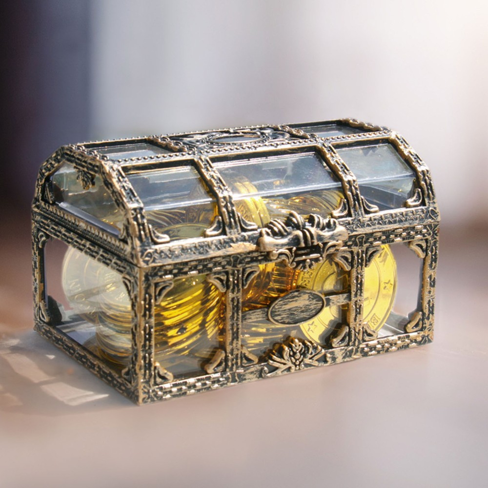 This pirate treasure chest is a must-have! The vintage design with its intentionally weathered look adds so much charm. Made from sturdy ABS, it’s lightweight yet durable—perfect for protecting jewelry, coins, or trinkets. The clear lid lets you see your treasures while keeping them safe. Stylish, functional, and fun—great as a gift or for personal use!