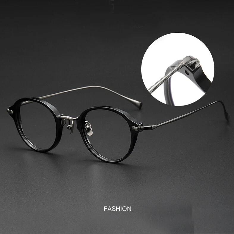 Transparent Round Eyeglass Frames Men Vintage Acetate Full Rim Eyewear Women