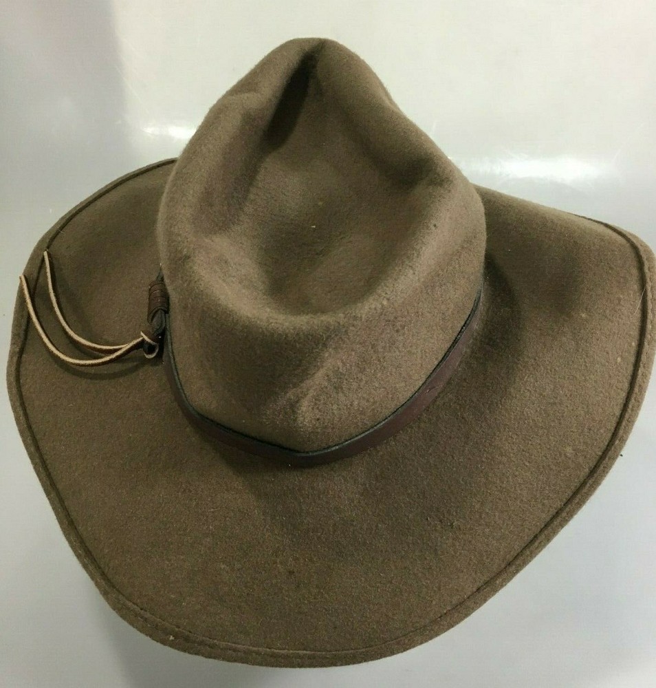 Brown 100% wool Size S, 20 1/2 inch inner band 3 1/2 inch brim, 3 1/2 inch crown Fair to good condition with a few spots and light pits I am happy to answer any questions and provide additional photos. Check out my other items ! International buyers are responsible for any import tax or customs duties. N0219