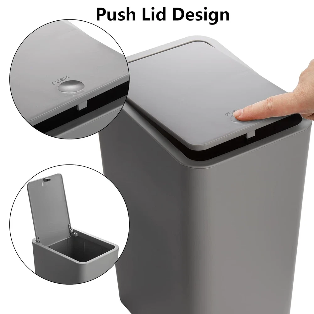 Store New Arrivals Add to Favorite View Feedback Contact Trash Can, 2 Pack 15 Liter / 4 Gallon Plastic Garbage Container Bin with Press Top Lid, Waste Basket for Kitchen, Bathroom, Living Room, Office, Narrow Place (Gray + Black) Description Item model number F-TrashCan-4Gallon-black/gray Room Type Bathroom,Bathrooms,Bedroom,Kitchen,Living Room,Office,Room Capacity 4 Gallons Color Gray or Black Special Feature Open Top, Lightweight Product Dimensions 9.8 x 7 x 14.1 inches; 3.42 Pounds Material Plastic Country of Origin China Shape Rectangular Opening Mechanism Press-Top Recommended Uses For Product Bathroom,Kitchen,Office Finish Type Polymer Premium Quality: Trash container is made of durable plastic. We make it out of a high-grade polymer that is both sturdy and light. You can rest assured that it will not fracture under the strain of its enormous load. Capacity: Pack of 2, each trash can 15 Liter/4 Gallon, Size: 9.8"L (Top length) x 7"W (Top width) X 14.1"H, great for bedroom, bathroom, office, conference room, display room, shop, kitchen, car and more. Save Floor Space: This plastic garbage can is quite slim and narrow for its volume. It has a small footprint, so it can be placed or hidden in almost any place. Easy To Use: The pop-up design lid is simple and convenient. Simply tap the button to open or closed the lid. The plastic ring can fix the garbage bag and prevent the garbage bag from slipping away. Suitable for Any Place: Slim design that looks great and easily fits into narrow openings and small spaces. Fits well in bathrooms, offices or wherever space is limited. Product Description Fasmov stylish trash can with a modern and simple design that looks great and enhance your existing decor. Fasmov Trash Can, 2 Pack 15 Liter / 4 Gallon Plastic Garbage Container Bin with Press Top Lid, Waste Basket for Kitchen, Bathroom, Living Room, Office Premium Quality: Trash container is made of durable plastic. We make it out of a high-grade polymer that is both sturdy and light. You can rest assured that it will not fracture under the strain of its enormous load. Capacity: Pack of 2, each trash can 15 Liter/4 Gallon, Size: 9.8"L (Top length) x 7"W (Top width) X 14.1"H, great for bedroom, bathroom, office, conference room, display room, shop, kitchen, car and more. Save Floor Space: This plastic garbage can is quite slim and narrow for its volume. It has a small footprint, so it can be placed or hidden in almost any place. Easy To Use: The pop-up design lid is simple and convenient. Simply tap the button to open or closed the lid. The plastic ring can fix the garbage bag and prevent the garbage bag from slipping away. Suitable for Any Place: Slim design that looks great and easily fits into narrow openings and small spaces. Fits well in bathrooms, offices or wherever space is limited. Easy to clean just need wipe clean with a damp cloth. Simple design allows it to fit in any type of interior design. Great for bedroom, bathroom, office, conference room, display room, shop, kitchen, car and more. EASY TO CLEAN PREMIUM MATERIAL COMPACT DESIGN ABOUT US We offer the best prices around on high quality products. Our E-store includes media such as books, movies, music and games while offering electronics, toys, sporting apparel, clothing, tools, general home, garden items and more. SHIPPING We are always working hard to ensure your package arrives as soon as possible. Please understand that some factors like weather, high postal traffic, and the performance of shipping companies are outside of our control. We offer free shipping to the lower 48 states and ship within 2 business days of payment, usually sooner. We do not accept P.O. Boxes. Please provide a physical address. For shipping outside of the continental USA, we only use eBay's Global Shipping Program.The item is shipped to KY and then sent to the rest of the world. International customers are responsible for all duties and taxes. Continue to check out in order to calculate costs for shipping the item to your country. Messages regarding eBay's Global Shipping Program MUST be directed at eBay EXCLUSIVELY. RETURNS We offer a 30-Day Return Policy on items which you are not completely satisfied with. You have the option for a full-refund or an exchange of the item. No returns are available on items shipped outside of the USA. PAYMENT We accept PayPal. CONTACT US This page content is yet to come Please ad us to your favorite seller and visit again later Thank You CUSTOMER SATISFACTION We try our very best to make sure every customer is completely satisfied. If there's a problem, message us! We're happy to help. WE ACCEPT Copyright © 2021 AutoDS. | All Rights Reserved