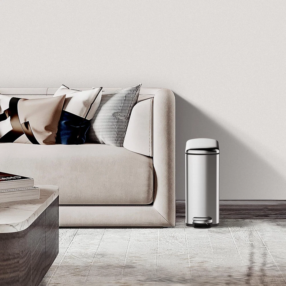 Trash Can Set 2 Pack, 13 Gal Stainless Steel Trash Can With Lid, Step On Waste Bins, 2 Gal Slim Trash Can for Narrow Space Trash Can Set - Our trash can combo value set solve both your kitchen and bathroom needs in one time, keeping your space tidy. The larger trash can 13 Gal is suitable for kitchen, living room and office, while the smaller trash can 2.1 Gal is suitable for narrow spaces thanks to its slim shape. Stainless Steel Trash Can - This trash can set is made of high quality stainless steel and thickened plastic inner buckets, sturdy and durable. All inner buckets are removable. Polished surface finish is fingerprint-proof and resists smudges, keeping trash can set shiny and easy to clean. Simple but Useful Design - This trash can has a rectangular shape so that it has spacious storage capacity than the circular can. Simple appearance matches perfectly with your modern home. Silent Close Lid - Our kitchen trash can use slow down technology, open and close will not make a lot of noise. Please rest assured that you can use it with no worry about disturbing your families break. Strong Steel Pedal - The steel pedal has experienced hundreds of test before sending to you, durable and strong. If you have any questions, please feel free to contact us.