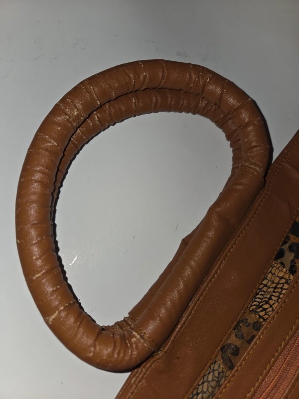 Preowned but still in excellent condition zippered closure travel bag with zippered pocket in front and back, lined with zippered pocket inside. Please see pics for flaws. Comes with mini zippered wallet. Approximately 15.5x12. Sold as is