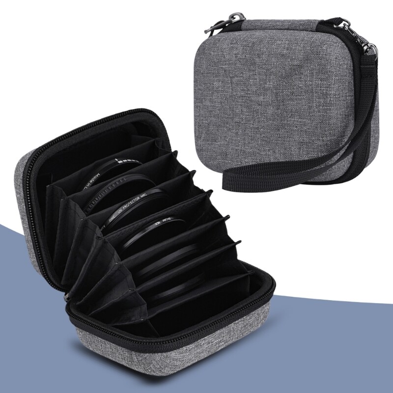 1. This lens filter case is a must-have for photographers! It securely holds up to 8 round filters (up to 67mm) with its soft-lined EVA interior, keeping them scratch-free and organized. The compact, durable design makes it perfect for travel or studio use, offering quick access to filters while protecting them from bumps and drops. Great for both hobbyists and pros!