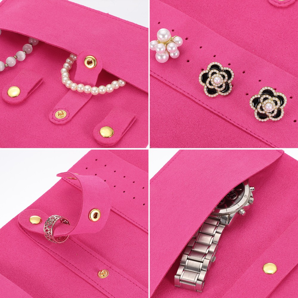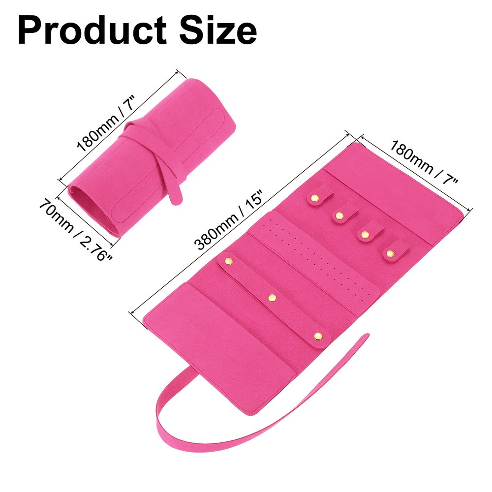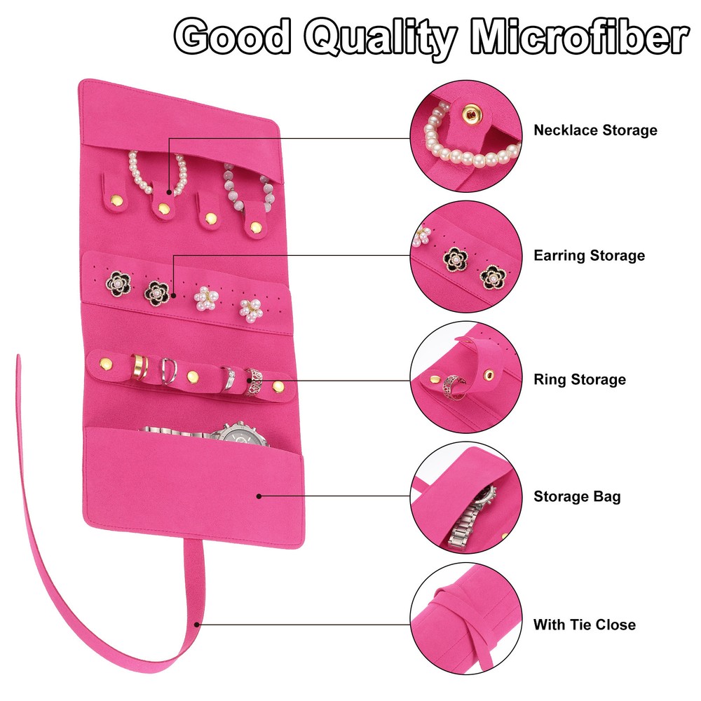 Travel Jewelry Bag Roll, Foldable Jewelry Travel Organizer with Tie, Rose Red
