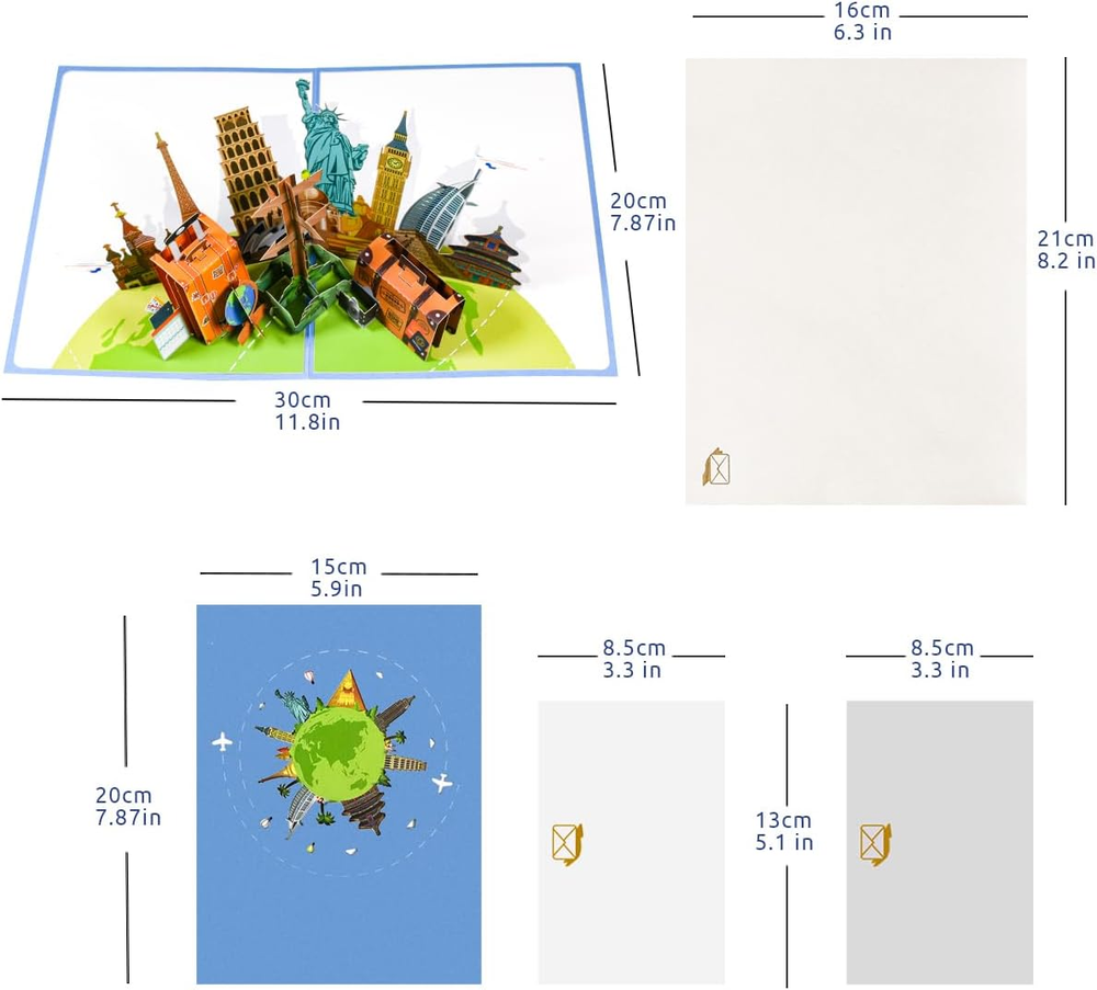 YUNZAV Travel Pop up Card, Pop up Card for Travel Lover, Holiday Travel Voucher, 3D Retirement Card, Birthday Greeting Card-For Travel Lover. 【3D Travel Birthday Card】A perfect gift for travel enthusiasts. Open the travel card and pop up many famous city landmarks, Sydney Opera House, London's Big Ben, Statue of Liberty, China's Forbidden City, Eiffel Tower and more. Sure to wow the recipient. 【Suitable for All Occasion】Whether it's Mother's Day, Father's Day, Valentine's Day, Anniversary, Birthday, Congratulations or Retirement Day, this 3D Travel Greeting Card is perfect for your family or friends. It will all surprise and delight your loved ones. 【Happy Father's Day Card】Our Vacation Holiday Cards are made from multiple layers of intricate laser cut paper, hand-assembled with a three-dimensional scene. Create a marvelous moment and a lasting spectacle of celebration. 【 Packaging Included】This 3D birthday card comes with an envelope for you to send to your friends and family. You can write your own message inside the card to express your wishes for your loved ones or friends. This is sure to make a heart warming pop up card. 【】CNLITIHEKA is a customer-focused brand specializing in holiday greeting cards, birthday cards and more. If you have any questions about your purchase, please feel free to contact us. Product description 3D Travel Birthday Pop Up Card with Envelopes This travel birthday greeting card is a great gift, it showcases famous modern landmarks from around the world, creating an atmosphere of freedom and romance. The card will amaze anyone who receives it! Choose this creative birthday gift card for your girlfriend, daughter, mom, love ones, friend. Not only a birthday gift card, but also it can be kept as a keepsake and put out year after year as a decoration. Funny Retirement Gift for Woman Men What's include? 1 x Pop up Card (7.87*5.91 inches/20*15 cm) 1 x Envelope (8.27*6.30 inches/21*16 cm) 2 x Blank Card (5.12*3.35 inches/13*8.5 cm) Open size: 11.81 x 7.87 x 5.31 inches/30*20*13.5 cm Perfect Vacation Holiday Cards This 3D birthday card is made from the best quality art paper with craftsmanship to match. The pop-up design is laser cut and carefully assembled by hand. You can write down wishes for your family or friends to create a happy moment for this special day of their own. Dear Valued Customers, We believe in transparency and trust. Below is an overview of our product sourcing and fulfillment process. Customer Assurance Quality Control: All products are carefully selected and reviewed before being listed for sale. Item condition, specifications, and details are accurately described in each listing. Fulfillment & Shipping: To ensure reliable and timely delivery, some orders may be fulfilled through trusted third-party fulfillment partners, including major U.S. logistics providers. Customer Support: If you have any questions or concerns regarding your order, please contact us through eBay Messages. We are committed to resolving all inquiries promptly and professionally. Thank you for your trust and continued business. Shipping Policy & Delivery Expectations We work diligently to ensure your order is processed and shipped as efficiently as possible. Our Commitment Prompt Handling: Orders are processed and dispatched according to the stated handling time on the listing. External Factors While we strive for timely delivery, delays may occasionally occur due to factors beyond our control, including: Severe weather conditions High shipping volume during peak seasons Carrier delays or routing changes We appreciate your understanding in these situations. Customer Support If you have questions regarding shipping or tracking, please contact us via eBay messages for assistance. Shipping Coverage & International Orders Domestic Shipping We ship within the lower 47 U.S. states . Please confirm delivery timelines before purchasing if timing is critical. International Shipping eBay International Shipping Program: All international orders are shipped to eBay’s U.S. hub (Illinois) and forwarded internationally by eBay. Duties & Taxes: International buyers are responsible for all customs duties, taxes, and import fees. Program Inquiries: Questions related to international shipping fees or delivery must be directed to eBay, as these are managed entirely by their program. Returns, Exchanges & Issue Resolution No-Return Policy We do not accept returns. Please review all item details carefully before purchasing. Damaged or Non-Functional Items If an item arrives damaged or non-functional, we will provide a replacement or exchange . Please contact us promptly with details and photos so we can assist you efficiently. Customer Satisfaction & Feedback Your satisfaction is important to us. If you experience any issues with your order, please message us before leaving feedback so we can work toward a resolution. If you are satisfied with your purchase, we appreciate your positive feedback. Once received, our system will automatically leave positive feedback in return. For all inquiries, please use the eBay messaging system . Thank you for shopping with us, and we invite you to visit our eBay store to view additional items. “Thank you so much for supporting our small business—we truly appreciate it!” — Store Management Your feedback is very important to us, after you get your package and you are satisfied with our service please leave us positive feedback If you have any problem with your order / any questions please before leave any type of negative feedback contact us we will try to resolve any issues that may occur. For any questions, using eBay contact system Please visit our eBay store to check out other items for sale! Thank you for shopping at our store.
