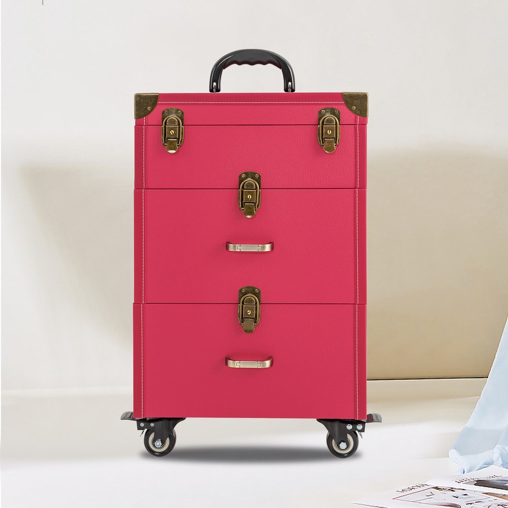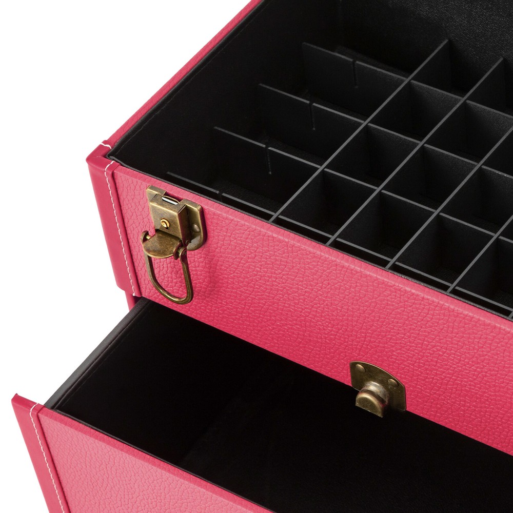 1. This rolling case is a game-changer! It holds all my makeup and nail polishes securely while being super easy to move around. The wheels glide smoothly and the compartments keep everything organized. Perfect for travel or home use - absolutely love it!