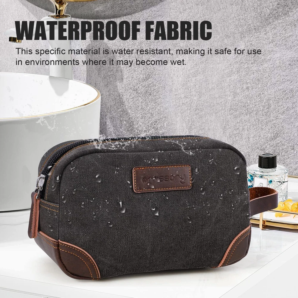 Store New Arrivals Add to Favorite View Feedback Contact Travel Toiletry Bag for Men, Leather and Canvas Toiletry Bags, Dopp Kit for Men, Travel Bathroom Bag Men'S Shaving Kit, Travel Kit Small Bag for Men, Shaving Bag for Travel Accessories (Gray) Description Item model number -DOPP1-GRY Color Gray Product Dimensions 11.8 x 5.3 x 2.1 inches Country of Origin China Item Weight 6.5 ounces Department unisex-adult HIGH-QUALITY DURABLE MATERIAL: This exceptional toiletry travel bag by emissary is made of canvas and PU leather, which is known for its lightweight yet durable qualities, the perfect combination for traveling. This specific material is water resistant, making it safe for use in environments where it may become wet. Making this the perfect bathroom bag, shaving bag, and travel dopp kit. MADE FOR TRAVEL AND PORTABILITY: Designed with the traveler in mind, this travel kit comes with a durable PU leather side handle to ensure that carrying your bag while traveling is made easy. CONVENIENT MULTI-USE BAG: Whether you are travelling for business or personal reasons, this canvas and leather toiletry bag will certainly meet your needs. It was designed for both men and women, and is an extremely versatile wash bag that can be used as a traditional toiletry bag or shaving kit bag, a safe place to your healthcare items while traveling, or it can be used as a carry-on airline bag to needed in-flight toiletries. LARGE TOILETRY BAG, LARGER THAN IT LOOKS: Compact yet spacious, this travel bag provides adequate room for all your essentials. The bag as a whole measures over 9.8'' L x 5.9'' W x 4.5'' H in Inches / 25cm L x 15cm W x 11.5cm H, with a volume of nearly 4 L. It features a main compartment that holds larger items such as shampoo bottles or shaving cream, and an internal pocket that provides extra storage with easy access. emissary 24 Month Protection: If anything were to happen to your bag in first 24 months, through 's messaging system and we will replace your bag or your . Your satisfaction is our priority. Product Description HOW TO CLEAN THE EMISSARY CANVAS TOILETRY BAG The best way to clean your bag is to wash it by hand with a mild detergent or another cleaning solution like talcum powder or cornstarch. Wipe it gently with a damp, warm, white towel and allow it to air dry for the best results. This is best for maintaining washing safety during the occasional spot cleaning, too. ABOUT US We offer the best prices around on high quality products. Our E-store includes media such as books, movies, music and games while offering electronics, toys, sporting apparel, clothing, tools, general home, garden items and more. SHIPPING We are always working hard to ensure your package arrives as soon as possible. Please understand that some factors like weather, high postal traffic, and the performance of shipping companies are outside of our control. We offer free shipping to the lower 48 states and ship within 2 business days of payment, usually sooner. We do not accept P.O. Boxes. Please provide a physical address. RETURNS We offer a 30-Day Return Policy on items which you are not completely satisfied with. You have the option for a full-refund or an exchange of the item. No returns are available on items shipped outside of the USA. PAYMENT We accept PayPal. CONTACT US This page content is yet to come Please ad us to your favorite seller and visit again later Thank You CUSTOMER SATISFACTION We try our very best to make sure every customer is completely satisfied. If there's a problem, message us! We're happy to help.
