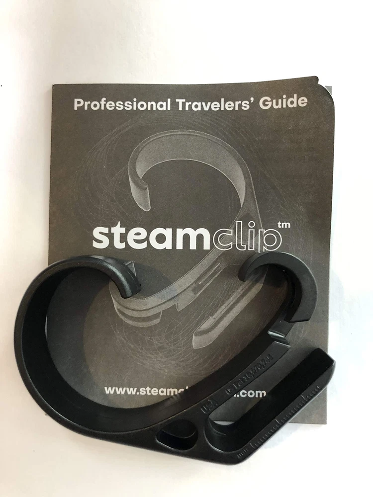 STEAM CLIP Travel Tool Over shower door hook Traveler's Steamer Clip Hook, Over The Door Hanger for Shower, Heavy Duty Clip Hooks for Clothes Bottle Opener & Phone Stand - 1 pack CLIP FOR STEAMING & TRAVEL HOOK: Steam away wrinkles from clothing by using the hotel shower instead of ironing with SteamClip. Designed to work with all hotel hangers like the ball-top or micro-hook and on all different types of showers so you can look sharp and save time. This travel tool is a game-changer for the traveler that hates to iron. Let the steam do the work. BONUS MULTI-TOOL FUNCTIONALITY: More than just a hook for steaming. A bottle opener, a smartphone stand, thread/tag cutter, and ruler are all part of SteamClip’s clever design with the traveler in mind. Use SteamClip as an over-the-door hook for your purse or jacket in restrooms and it’s also handy as an extra hook around the hotel room. It’s your all-in-one travel companion. CLOTHING & LAUNDRY CARE: Travel pros know to use the popular shower-steam hack instead of ironing. But you can’t always count on being able to use hotel-style security hangers on the shower, plus there are different shower types. SteamClip was designed from the ground up as a hook for steaming with all hangers and shower types. Save time, steam wrinkles. DESIGNED FOR TRAVELERS: Numerous uses such as bottle opener, thread/tag cutter (because no scissors or knife on the plane), smartphone stand is always handy and keeping purse or jacket off of dirty airport restroom floor. Plus helpful to have extra hook in hotel room. Includes guidebook for steaming wrinkles and more. AMAZING ON CRUISE SHIPS: Irons aren’t even allowed in cabins, use SteamClip to get rid of wrinkles on dress or shirt for dinner nights. Use SteamClip to hang wet swimsuits too. Use smartphone stand to FaceTime with family. The bottle opener will come in handy too. It’s a cruise tool you will keep in your travel bag! Some smartphones with cases may not fit the smartphone stand application. Travel Pros don't use an iron! (They use steam from hotel shower) This proven travel hack is awesome. But it only works when you have a secure place close to the steam. And usually - you don't. It's hard to find a place with a regular hanger, never mind hotel hangers (like the dreaded ball-top). Improvising means dropping clothes in a puddle of water This is why we don't use this great hack.. Until now. STEAM CLIP is the only travel tool in the world designed from the ground up for steaming away wrinkles in all types of showers. STEAM CLIP works on all shower types and with all hotel-hangers (even the dreaded ball-top). So, you can always bypass the bulky iron & get rid of wrinkles while you shower. Saves time too! PLUS it's a multi-tool for travelers with EXTRA FEATURES you will actually use: √ BOTTLE OPENER √ SMARTPHONE STAND √ THREAD / TAG CUTTER √ RULER √ Extra hook around hotel room √ Use to KEEP PURSE OR JACKET OFF RESTROOM FLOOR in the airport Includes "Professional Travelers' Guide Instruction Booklet STEAM CLIP will be your best friend after check-in. - Compact & lightweight - Made in USA - Patented design - F-l-e-x-i-b-l-e plastic opens wide - A must for cruise ships where irons aren't allowed in cabins - Save water, use STEAM CLIP during your shower 100% SATISFACTION GUARANTEE Order with confidence from STEAM CLIP the only authorized seller of the STEAM CLIP brand-name If another Seller does not provide an authentic branded STEAM CLIP, return it for a refund & file an A-Z claim against them. Contact Amazon or STEAM CLIP support with questions. + Voted Best New Travel Gadget of 2018 -SmarterTravel Editors Choice Awards + Selected for the 2019 GRAMMY Awards Gift Bag distributed backstage at The GRAMMYS Travel Pro 1 Pack - includes 1 STEAM CLIP Black SHIPPING - We offer FREE shipping on all orders! - We ship within 3 business days of payment, usually sooner - We use a selection of shipping services such as UPS, FedEx, USPS etc - We only ship to the lower 48 states, no APO/FPO addresses or PO Boxes allowed International buyers – please note: Import duties, taxes, and charges aren't included in the item price or postage cost. These charges are the buyer's responsibility. - Please check with your country's customs office to determine what these additional costs will be prior to bidding or buying. - We have confidence in our products, but if you are not fully satisfied please contact us within 30 days of purchase and you will get full refund. * Order Cancellation Policy ** You can return a product for up to 30 days from the date you purchased it. 1. The seller reserves the right to cancel the special case only due to eBay cancellation fee. 2. The decision of seller is the final. 3. The seller will respond to the cancellation request within 2 business days. Please wait for the result of cancellation. 4. In case the cancellation is not completed by some reasons, the buyer can follow the options below to get the refund. 4.1 The buyer can reject the item when it arrives. 4.2 The buyer can send the item back to the seller within 30 days If the buyer receives item (USA Shipment ONLY). The seller will provide the FREE return label to the buyer when the buyer opens " Return Item" case on eBay by using the reason as "Change my mind" ONLY. 5. When buyer has placed the order. The order will be processed and completed by automatic warehouse system within 5 minutes. In case that buyer sends the cancellation request after 5 minutes of placing the order, the request will be rejected. **Sending direct message to cancel the order is not allowed for every case.* Return Policy For the return case - If buyer would like to return the items for refund or replacement, please CONTACT SELLER to receive the free return label from seller. The refund or replacement will be processed with the tracking number of return label which is provided by seller only. The other ways of return which are not approved by seller will not b