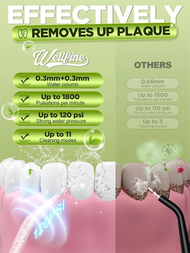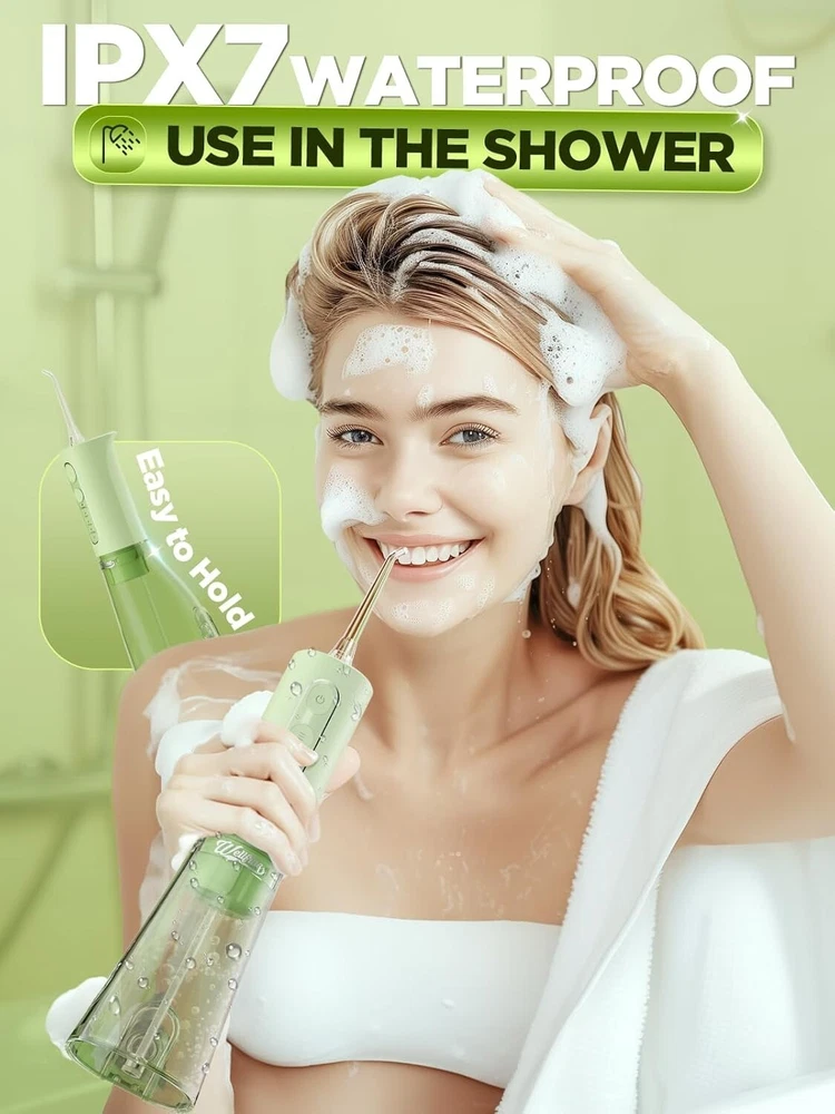 Package Dimensions: 9.09 X 3.82 X 3.07 Inches; 13.12 Ounces gtin13: Does not apply UPC: Does not apply Type: Water Flosser Handle Material: Plastic, Ergonomic Plastic Unit Count: 1 Count Color: Green Power Source: Corded Electric Tip Material: Plastic Brand: Unbranded Features: Portable, Rechargeable, Waterproof, Ergonomic Design, 4 Modes, 11 Pressure Settings, Custom Mode, Memory Function, IPX7 Waterproof, Detachable Water Tank, Wide-Mouth Tank, Specialized Nozzles, Non-Slip Grip, Lightweight, Powerful Battery Life Special Feature: Non-slip Grip Department: Unisex Adults Product Benefits: Gum Health