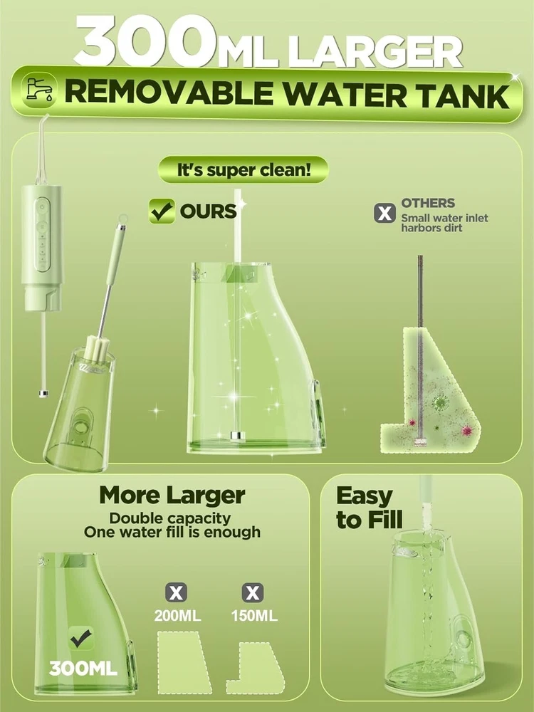 Travel-Friendly Cordless Water Flosser – Deep Clean for Braces & Implants ‹ › ‹ › ‹ › ‹ › ‹ › ‹ › ‹ › ‹ › Travel-Friendly Cordless Water Flosser Deep Clean for Braces & Implants Unmatched Deep Cleaning for Healthier Gums and Superior Oral Hygiene Delivers an astonishing 1,400-1,800 high-frequency pulses per minute. Adjustable water pressure from 30-120 PSI, ensuring the ultimate clean. Dives deep between teeth, obliterating food debris effectively. Gently massages gums to enhance blood circulation and prevent gum issues. Transforms your gum health, giving you the confidence to shine. 4 Customizable Modes for a Tailored Experience 11 pressure settings: from gentle to intense, plus a custom mode. Perfect for braces, dental implants, or sensitive gums. Memory function recalls your preferred settings for personalized use. Experience an elevated oral care routine tailored to your needs. Powerful Battery Life and Ultimate Portability—Your Essential Travel Buddy Lasts up to 30 days on a single charge, perfect for long trips. Sleek, lightweight design for easy transport without compromising care. IPX7 waterproof technology allows refreshing use in the shower. Ergonomic Design for Effortless Comfort Ergonomically designed grip for comfort during use. Massive 300ML water tank for uninterrupted flossing routines. Detachable, wide-mouth tank is easy to fill and clean. 5 Specialized Nozzles—The All-in-One Oral Care Solution for Your Family Comes with five specialized nozzles for every oral care challenge. From deep cleaning to gentle gum care, designed for family needs. Easy-to-switch nozzles enhance hygiene for everyone. Includes charger, ensuring your flosser is always powered up. Why Choose Our Travel-Friendly Cordless Water Flosser? Transform your oral hygiene routine with a flosser that delivers unmatched cleaning power, portability, and user comfort. Whether you have braces, implants, or simply want superior gum care, this cordless water flosser is the ideal solution to achieve radiant smiles and healthy gums. Enjoy a personalized, deep-cleaning experience that leaves traditional flossing in the dust. Elevate your oral care today and redefine your smile! Shipping Free & Fast Shipping - We offer free shipping to most of the USA with a normal delivery time of 3-7 days. However, due to the current situation, additional delivery time (up to 3 weeks) may be required for some items. Alternative Carriers - We may use alternative carriers (e.g. USPS, FedEx, UPS, etc.) to ensure your package arrives safely and on time. Due to the use of multiple carriers, we are unable to provide a tracking number automatically. Handling Time - Orders are processed and shipped within 1-2 business days of receiving cleared payment. Shipping Restrictions - Shipping to Alaska, Hawaii, Puerto Rico, Guam, and other US territories may incur shipping charges or delivery restrictions. Please contact us before ordering, or your order can be refunded/cancelled. State Restrictions - There may be restrictions based on your state of purchase. For example, certain items may not be shipped to California due to state regulations. Contact for Tracking Updates - If you require tracking updates or have any concerns about the delivery of your order, please feel free to contact us, and we will be happy to assist you. Return 30-Day Hassle-Free Returns - We want you to be completely satisfied with your purchase. If you are not, you can return the item within 30 days of receiving it for a full refund or exchange. Easy Return Process - To start a return, simply contact us and we will provide you with a prepaid return shipping label and detailed instructions. Restocking Fee - There are no restocking fees for returns. However, the buyer is responsible for return shipping costs if the return is not due to a seller's error. Refund Processing Time - Refunds will be processed within 5 business days of receiving the returned item in its original condition. Payment We accept all major credit cards, PayPal, and Apple Pay for your convenience. Your payment information is secure and encrypted to ensure a safe and seamless transaction. Please complete your payment within 3 days of purchase to avoid any delays in shipping. Feedback Your feedback is extremely important to us. We strive to provide the best products and customer service possible. If you are satisfied with your purchase, please take a moment to leave us a positive review. If you have any concerns or issues with your order, please contact us before leaving negative feedback. We are committed to resolving any problems and ensuring your satisfaction. Contact Us If you have any questions or concerns, please feel free to reach out to our customer support team. You can contact us through the eBay messaging system. We are available Monday to Friday, 9:00 am to 5:00 pm EST, and we will do our best to respond to your inquiry within 24 hours. Thank you for supporting our small family business! UPC: Not Set Unit Quantity: 1 count Features: Portable,Rechargeable,Waterproof,Ergonomic Design,4 Modes,11 Pressure Settings,Custom Mode,Memory Function,IPX7 Waterproof,Detachable Water Tank,Wide-Mouth Tank,Specialized Nozzles,Non-Slip Grip,Lightweight,Powerful Battery Life Tip Material: Plastic Handle Material: Plastic,Ergonomic Plastic Brand: Unbranded Type: Water Flosser Color: Green Product Line: Not Set Model: Not Set MPN: Not Set Country/Region of Manufacture: Not Set Manufacturer Warranty: Not Set Unit Type: Unit Department: Not Set