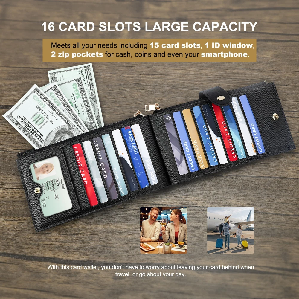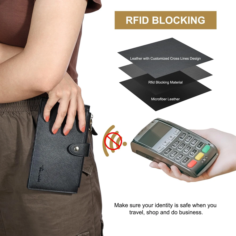 Travelambo RFID Wallet Women Large Size Bifold Multi Card Wallet Case with Zipp Features: Premium Craftsmanship: The wallet for women features customized leather with a stylish cross lines design, exuding a premium look and feel. High-quality hardware ensures that the wallet is built to last 100% Handmade: The Travelambo women's wallet is meticulously handcrafted by experienced craftsmen using traditional tools like cutting knives, scissors, and hammers. This ensures that each wallet retains its original leather shape and displays impeccable craftsmanship RFID Blocking: The rfid blocking wallet has been tested and proven to effectively block signals from credit cards, debit cards, driver's licenses, and ID cards operating at a frequency of 13.56 MHz, ensuring the security of your identity while you travel, shop, and conduct business Large Capacity: Our women's wallet has 15 card slots, 1 ID window and 2 zip pockets for cash, coins, and even your smartphone. It meets all your needs and ensures you never have to worry about leaving important cards behind while traveling or going about your day Lightweight & Slim Design: Our card wallet features buttons on the bottom and side, ensuring a flat profile even when it's full. It rejects bulkiness, saving valuable space in your bag Please note: This is a long women's wallet with a length of 7.6 inches, which is suitable for all large tote bags. Please be aware that it is not suitable for small purse Features: Premium Craftsmanship: The wallet for women features customized leather with a stylish cross lines design, exuding a premium look and feel. High-quality hardware ensures that the wallet is built to last 100% Handmade: The Travelambo women's wallet is meticulously handcrafted by experienced craftsmen using traditional tools like cutting knives, scissors, and hammers. This ensures that each wallet retains its original leather shape and displays impeccable craftsmanship RFID Blocking: The rfid blocking wallet has been tested and proven to effectively block signals from credit cards, debit cards, driver's licenses, and ID cards operating at a frequency of 13.56 MHz, ensuring the security of your identity while you travel, shop, and conduct business Large Capacity: Our women's wallet has 15 card slots, 1 ID window and 2 zip pockets for cash, coins, and even your smartphone. It meets all your needs and ensures you never have to worry about leaving important cards behind while traveling or going about your day Lightweight & Slim Design: Our card wallet features buttons on the bottom and side, ensuring a flat profile even when it's full. It rejects bulkiness, saving valuable space in your bag Please note: This is a long women's wallet with a length of 7.6 inches, which is suitable for all large tote bags. Please be aware that it is not suitable for small purse eBay integration by