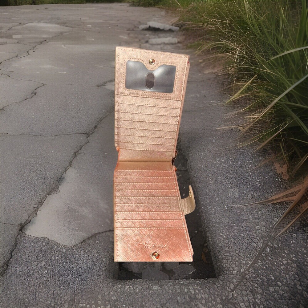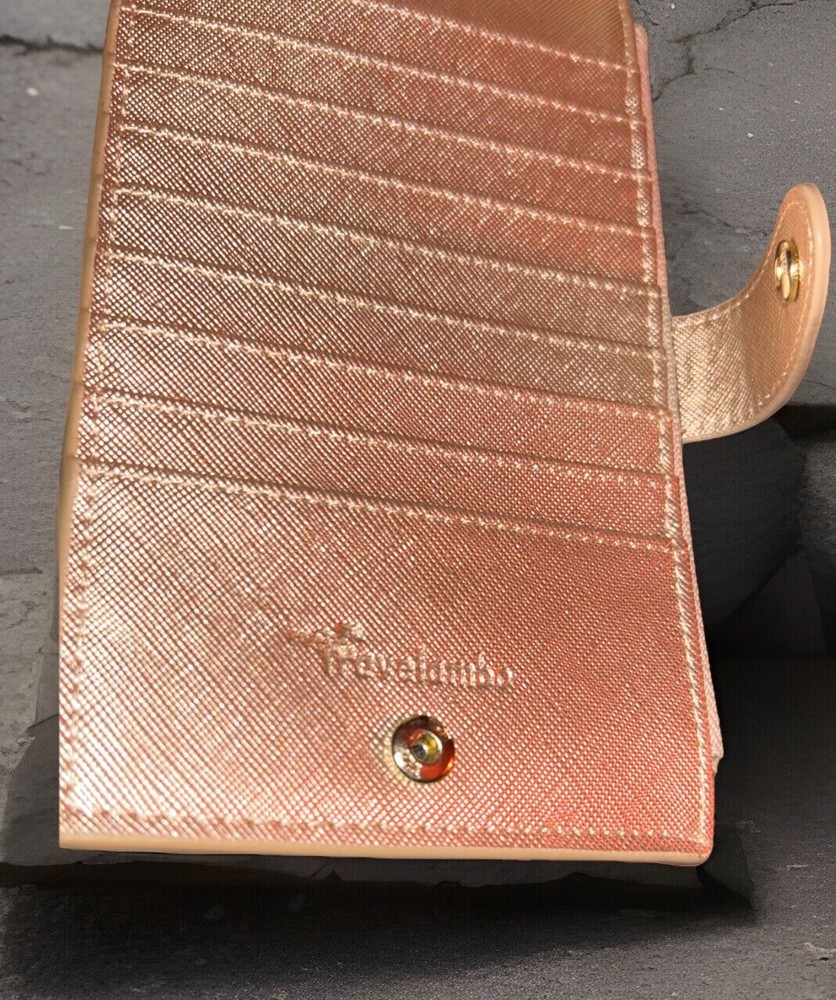 Color: Rose Gold Department: Women Brand: Travelambo Features: Credit Card, Folding Pattern: Solid Type: Wallet Accents: Zipper, Logo