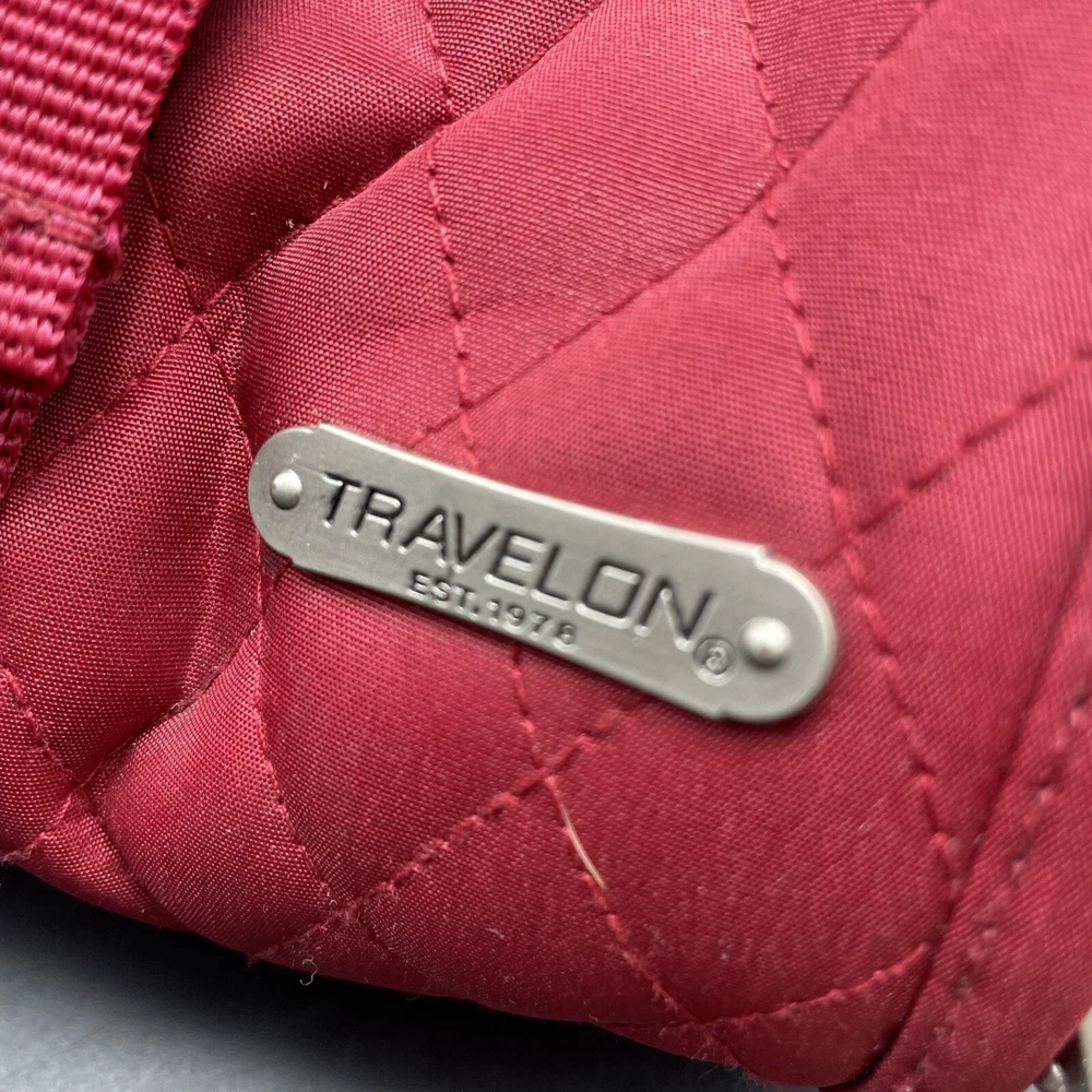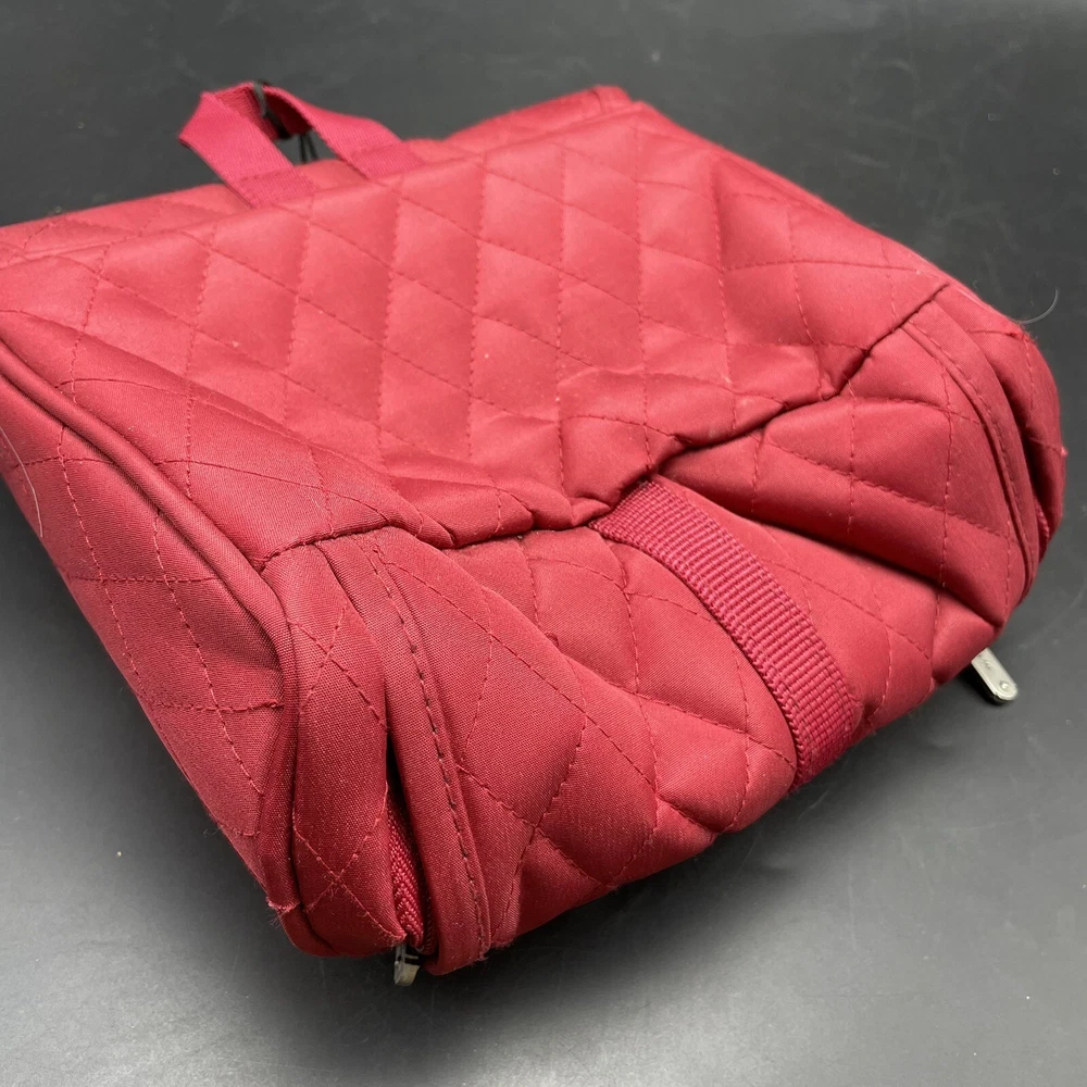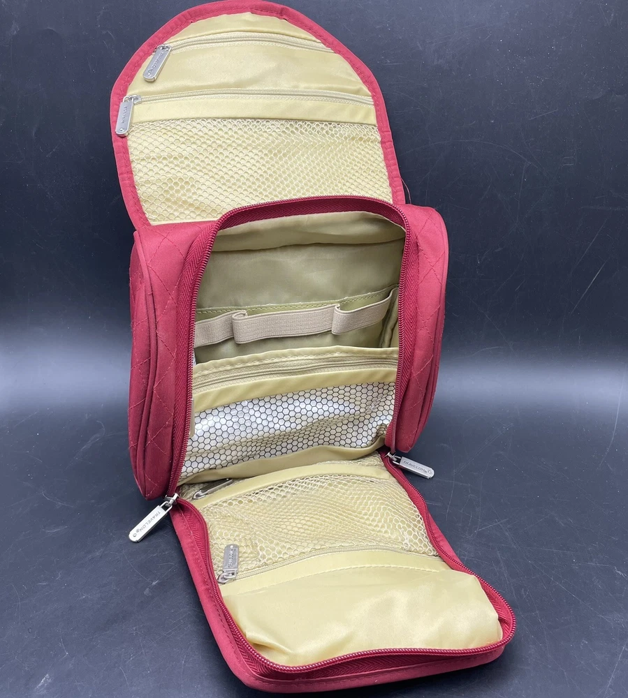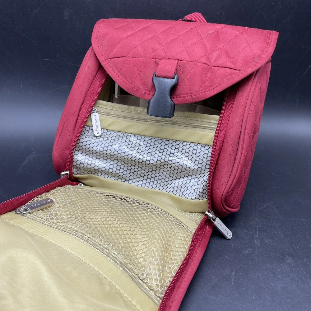 Travelon Compact Hanging Toiletry Kit Travel Makeup Bag Organizer Red Maroon. Style #6111 Maroon color quilted nylon - called red on tag but not true red Check pictures for details and measurements