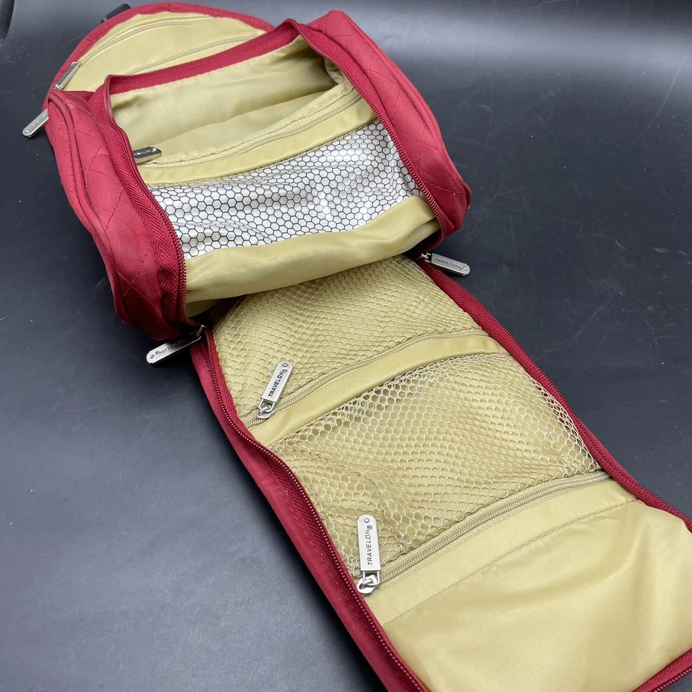 Travelon Compact Hanging Toiletry Kit Travel Makeup Bag Organizer Red Maroon