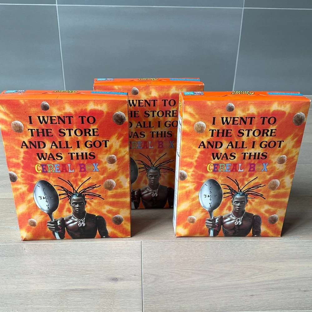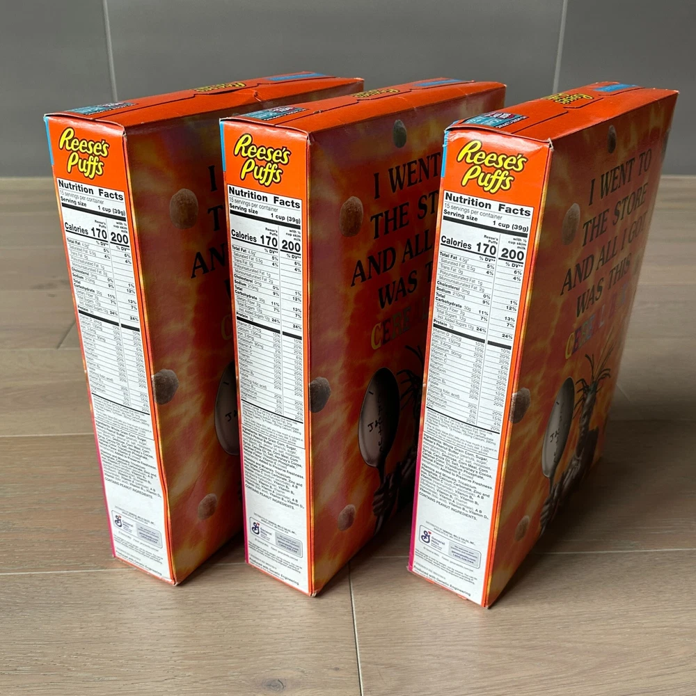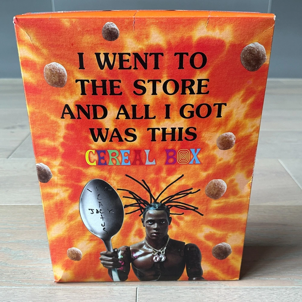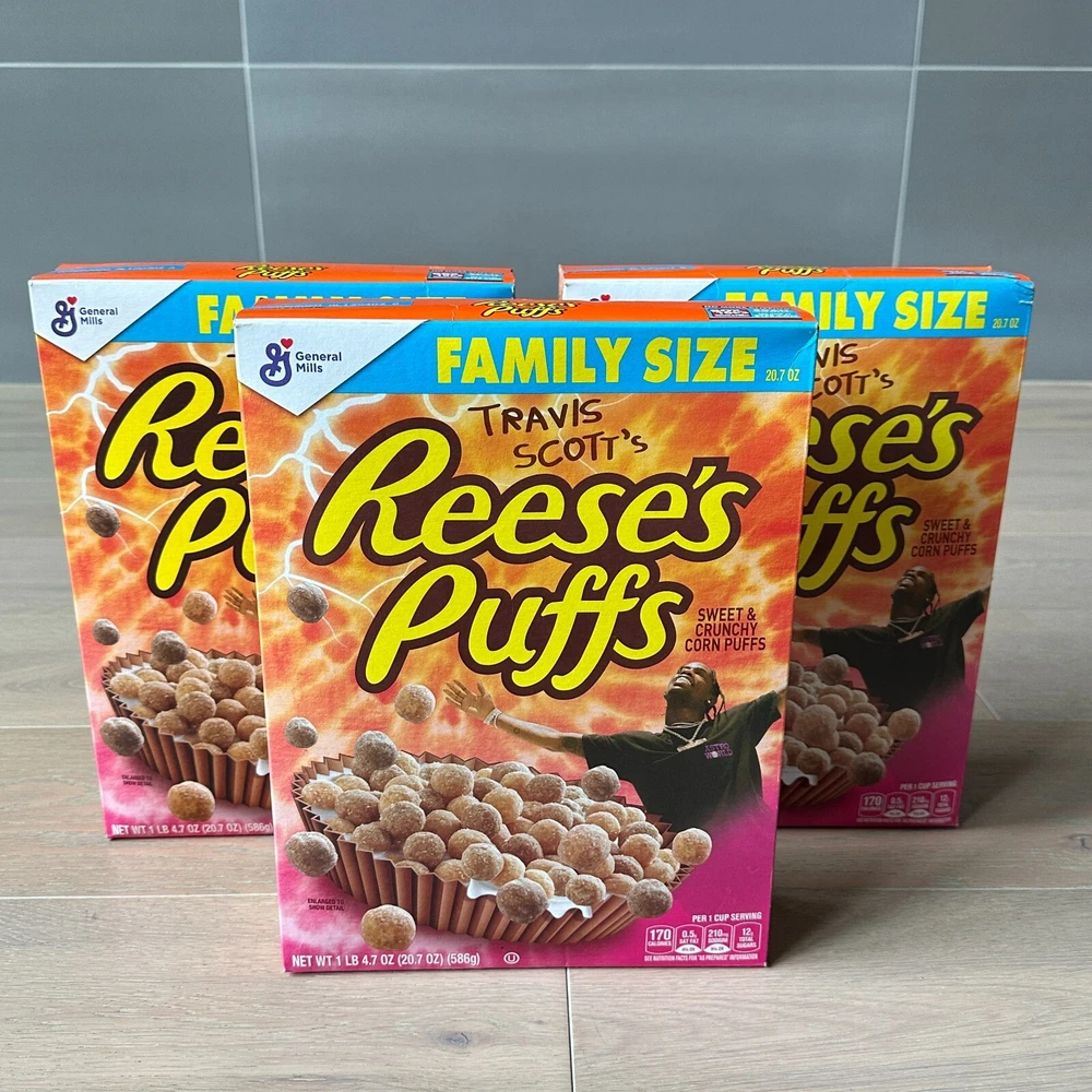 This limited edition Travis Scott Reese's Puffs cereal box is a must-have for any cereal or hip-hop fan. Featuring bright orange packaging with the iconic rapper's signature logo, this unopened display box is a perfect addition to any collection.The box showcases the Original General Mills Reese's Puffs cereal with a special twist, making it a highly sought-after item among collectors. Whether you're an avid collector or just looking for a unique piece of hip-hop memorabilia, this limited edition cereal box is sure to impress. PLS NOTE THIS IS NOT FOR CONSUMPTION - EXPIRED 2020 - DISPLAY ONLY 3 BOXES AVAILABLE 20.7 OZ SIZE
