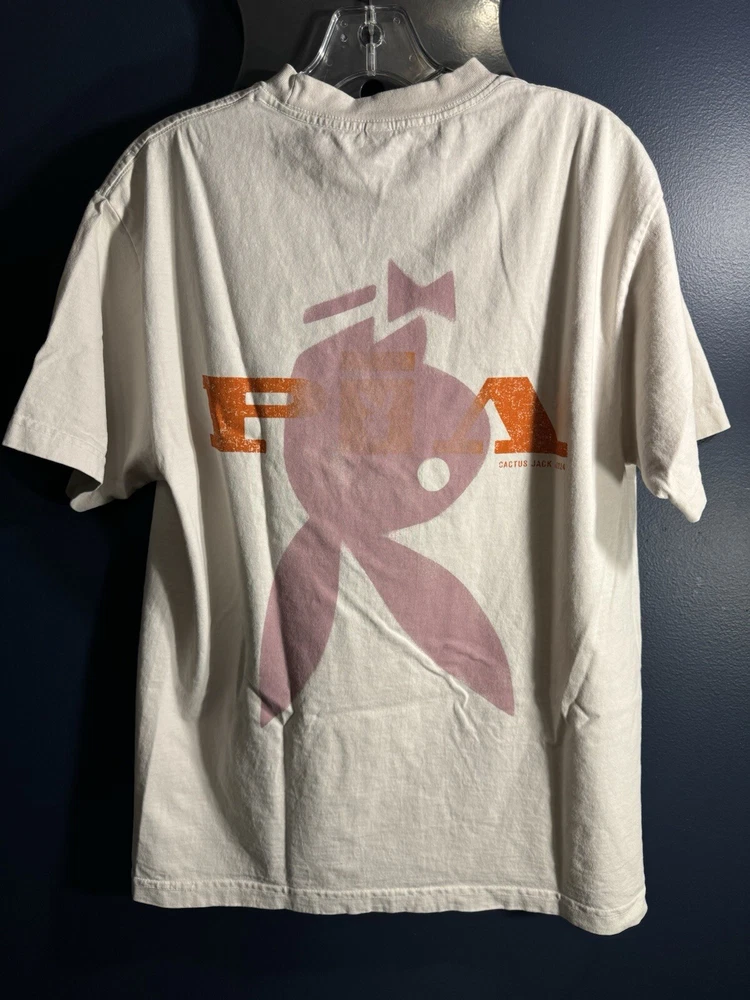 Get ready to show off your unique style with this limited edition Travis Scott x Playboy 2024 Las Vegas ComplexCon Exclusive Tee. This white tee features a graphic print of the iconic Bunny character and logo all made with high-quality cotton material. The tagless design adds to the comfort of the tee, making it perfect for any occasion.