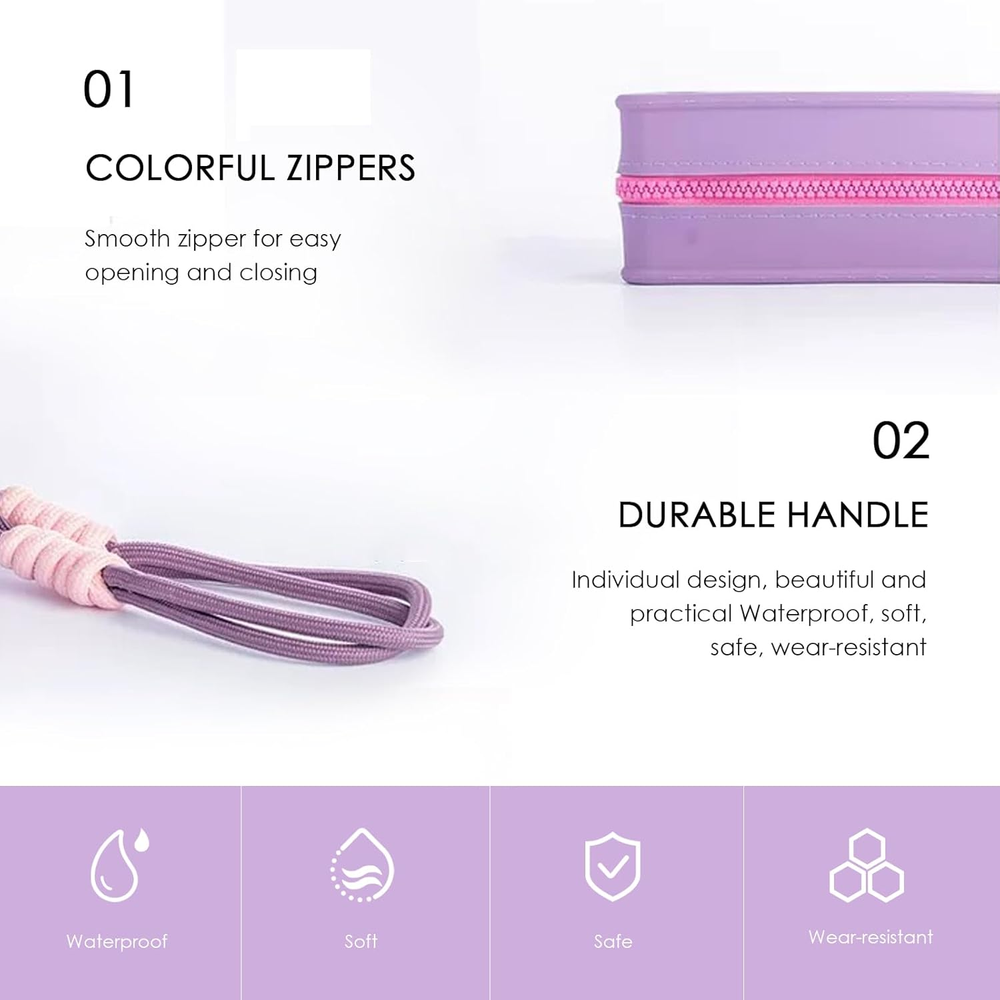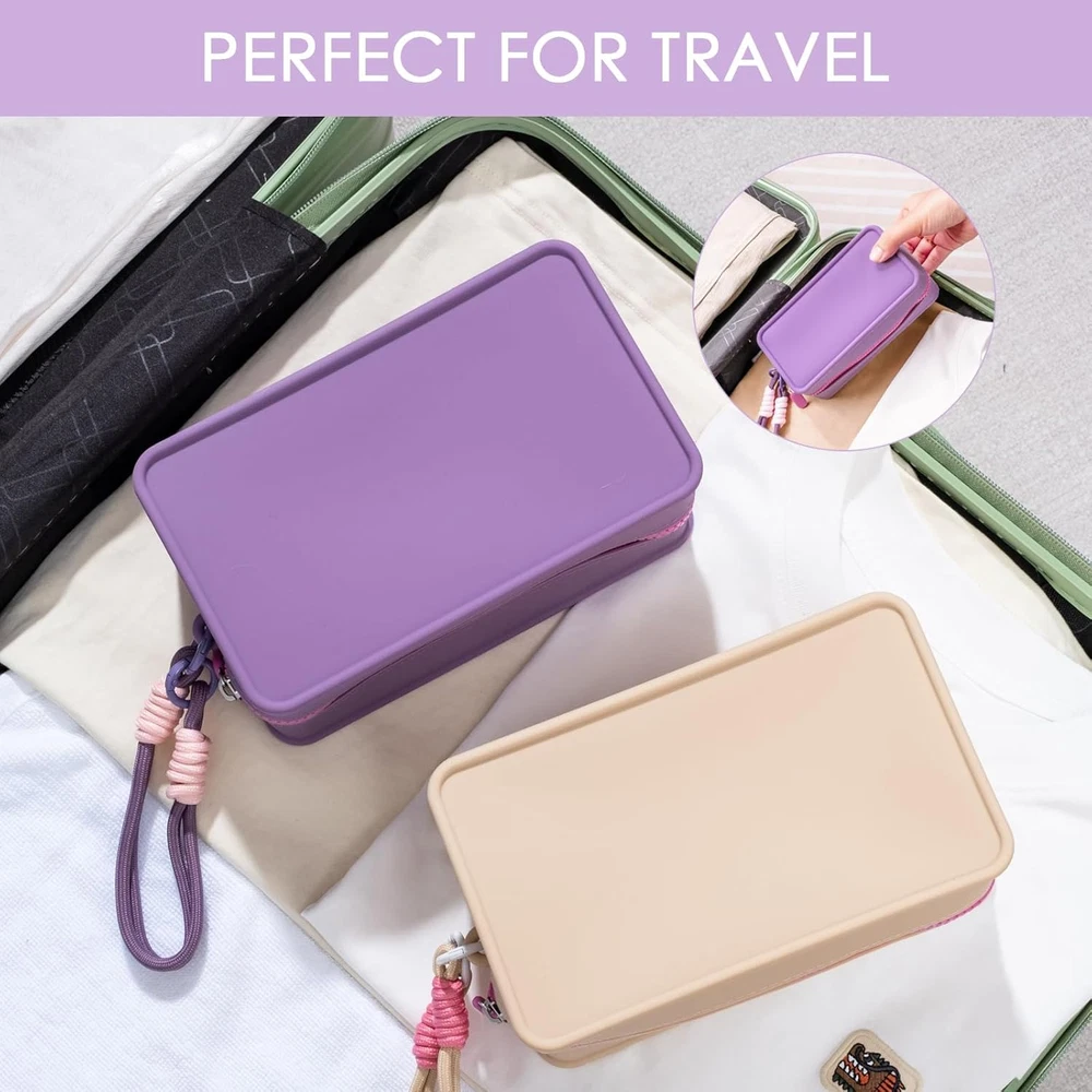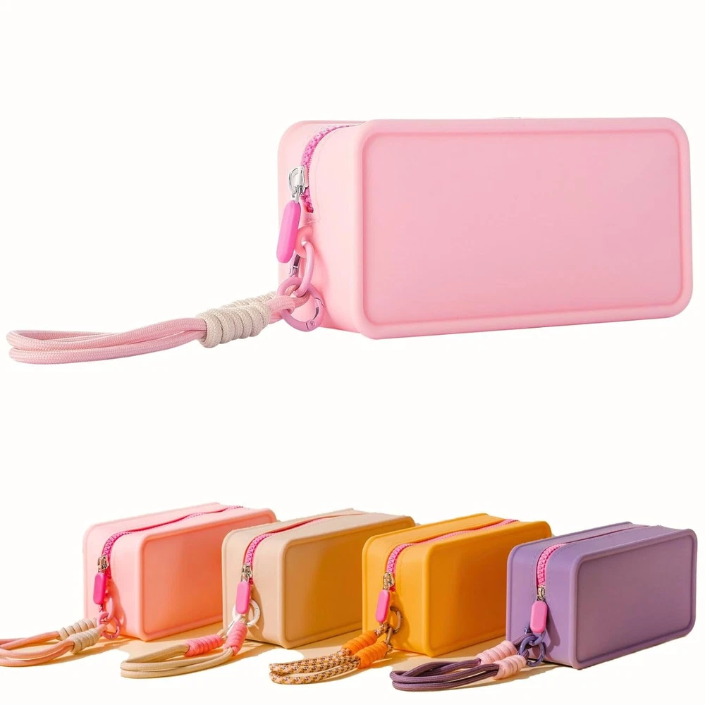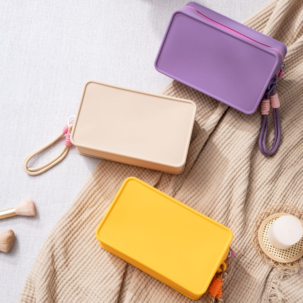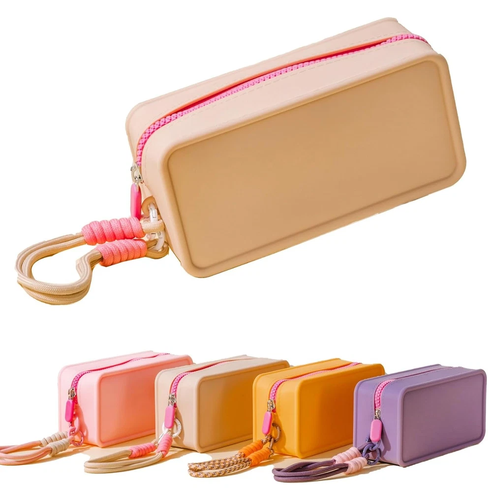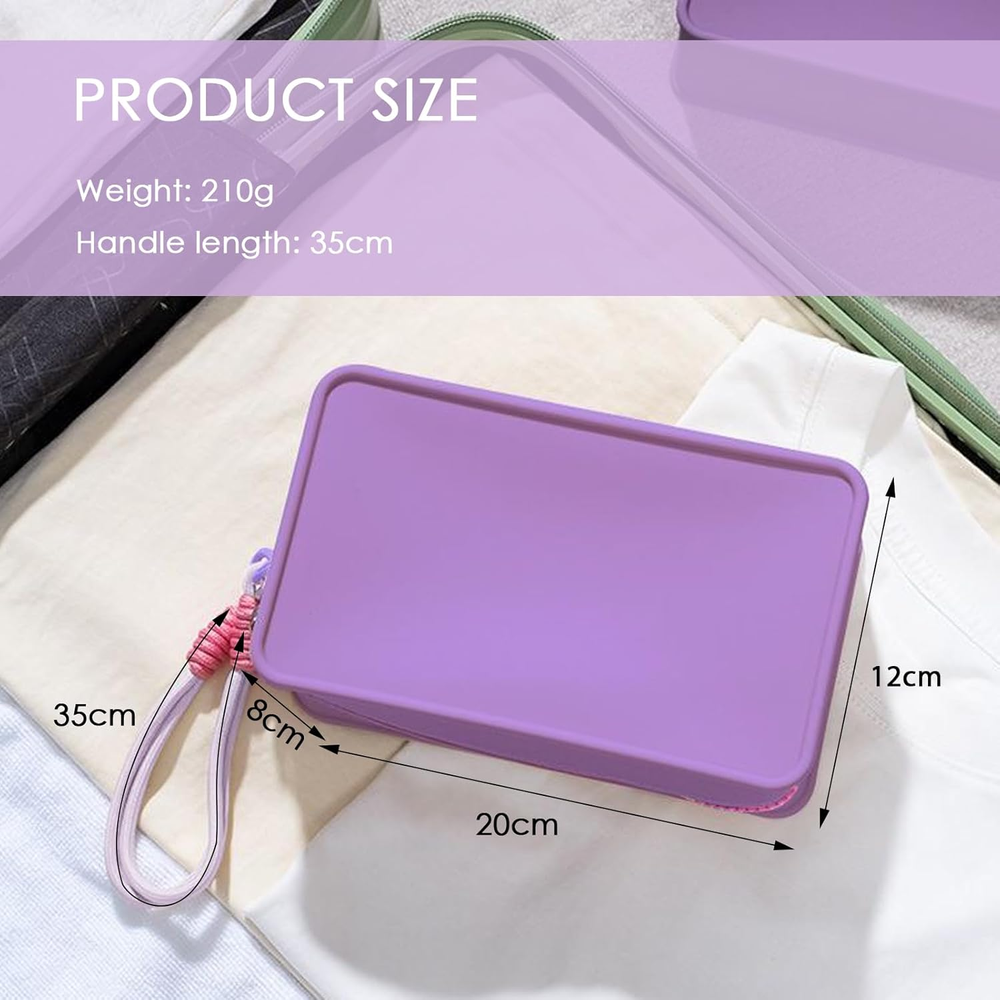 【2024 Latest Upgraded Design Travel Essentials】: The Travistar travel silicone cosmetic bag features a zipper closure designed to keep your items safe and easily accessible. This travel bag comes with a detachable nylon hand-woven lanyard for easy carrying. This make up bag also features a macaron/personality/dopamine contrast/splicing color design, with bright colors, simple, stylish and practical. 【High-quality Silicone Material & Safe Protection】: This travel makeup pouch is made of high-quality silicone material, which is known for its extraordinary softness, long-lasting durability and waterproof performance. This cosmetic bags for women can effectively buffer potential damage to items such as collisions and scratches, and play a role in protecting items inside and outside the handbag. 【Large Capacity Zipper Makeup Pouch】: This women's makeup travel bag measures 7.87 " x 3.15 " x 4.72 "/20 cm x 8 cm x 12 cm, weighs only 0.21 kg. Although this makeup bag organizer bag looks stylish and simple, it has a spacious interior that can easily accommodate your daily necessities such as mobile phones, wallets, cosmetics, makeup tools, toiletries and travel necessities. 【Versatile & Easy to Clean】: This silicone handbag is designed for multiple applications and can be seamlessly transformed into a stylish handbag, practical wallet, toiletry bag, skin care bag, coin purse or chic storage bag, easily adapting to different occasions and requirements. Due to the inherent easy cleanability of silicone, stains can be easily removed by wiping with a damp cloth, allowing your cosmetic pouch to maintain its original appearance throughout its service life. 【Multiple Color Options and Exquisite Choices】: This cosmetic travel bag is practical and versatile, perfect for daily life, business travel, vacations and outdoor activities, etc. Also, this travel pouch has a variety of color options, making it a great gift for birthdays, Valentine's Day, Mother's Day, Christmas, Thanksgiving, etc. Product Description Travistar Silicone Cosmetic Bag / Toiletry Bag / Travel Bag / Skin Care Bag Featuring a zipper closure, this foldable travel bag ensures the safety of your items while also allowing for convenient retrieval. This travel organizer bag comes with a detachable hand-woven nylon hanging rope for easy carrying. Lightweight & Portable Makeup Organizer Pouch - Color Display Simple, stylish, lightweight, and portable, this small zipper pouch showcases a trendy macaron/personality/dopamine-contrast/patchwork color design that is vibrant, chic, and practical. Large Capacity Zipper Makeup Pouch This women's makeup travel bag measures 7.87 " x 3.15 " x 5.9 "/20 cm x 8 cm x 15 cm, weighs only 0.21 kg. It has a spacious interior that can easily accommodate your daily necessities such as mobile phones, wallets, cosmetics, makeup tools, toiletries and travel necessities. Colorful & Smooth Zipper Made of strong, flexible silicone with a durable hand-stitched zipper. Waterproof Silicone Material This makeup pouch is made of high-quality silicone material, which is softness and waterproof. Easy To Clean Made of strong, flexible silicone, easy to clean with a damp cloth. Removable Handle This travel organizer bag comes with a detachable hand-woven nylon hanging rope for easy carrying. 1 Make Up Bag 2 Travel Bag 3 Toiletry Bag 4 Gifts For Her