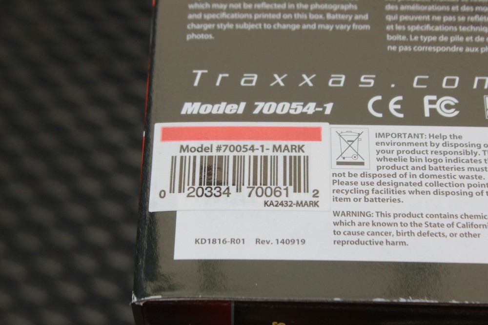 Traxxas 70054-1 Red Slash 4x4 Mark Jenkins 1:16 Rtr Set Akku + Charger 12 V New The description of this item has been automatically translated. If you have any questions, please feel free to contact us. Features: - Officially licensed Race Replica bodies: - Permanent four-wheel drive for superior control - XL-2.5 Electronic Speed Control (speed controller) - High-torque Titan® 12T 550 electric motor - Waterproof electronics - Ready-To-Race® incl. 6-cell NiMH Power Cell battery with iD - 2Ah fast charger at 12V with peak shutdown - TQ 2.4GHz remote control system - Chassis suspension proven from the Revo - Torque-control™ slipper clutch - Sealed differentials - Patented Traxxas High-Current connector system - Ball bearing with rubber seal - 3 driving profiles selectable Sport/Race/Training Technical specifications: Scale: 1/16 Length: 356mm Width: 185mm Height: 125mm Wheelbase: 206mm Scope of delivery: 1/16 Slash 4x4 TQ 2.4GHz remote control 7.2V NiMH battery 2A 12V charger operation manual Required for operation (not included): 4x AA batteries for the remote control world-of-modells wishes you lots of fun Visit our Ebay Store there you will find other series models at top prices and thereby save on shipping costs Warning : Not suitable for children under 14 years. You can return old batteries that we have or have had in our range as new batteries to our shipping warehouse (shipping address) free of charge. The symbols shown on the batteries have the following meaning: The symbol of the crossed-out wheeled bin means that the battery must not be disposed of with household waste. Pb = battery contains more than 0.004% lead by mass Cd = battery contains more than 0.002 percent by mass of cadmium Hg = battery contains more than 0.0005 percent by mass of mercury. Please note the above instructions. - Permanent four-wheel drive for superior control - XL-2.5 Electronic Speed Control (speed controller) - Ready-To-Race® incl. 6-cell NiMH Power Cell battery with iD - 3 driving profiles selectable Sport/Race/Training there you will find other series models at top prices Warning : Not suitable for children under 14 years. You can return old batteries that we have or have had in our range as new batteries to our shipping warehouse (shipping address) free of charge. The symbols shown on the batteries have the following meaning: The symbol of the crossed-out wheeled bin means that the battery must not be disposed of with household waste. Pb = battery contains more than 0.004% lead by mass Cd = battery contains more than 0.002 percent by mass of cadmium Hg = battery contains more than 0 - Permanent four-wheel drive for superior control - XL-2.5 Electronic Speed Control (speed controller) - Ready-To-Race® incl. 6-cell NiMH Power Cell battery with iD - 3 driving profiles selectable Sport/Race/Training there you will find other series models at top prices Warning : Not suitable for children under 14 years. You can return old batteries that we have or have had in our range as new batteries to our shipping warehouse (shipping address) free of charge. The symbols shown on the batteries have the following meaning: The symbol of the crossed-out wheeled bin means that the battery must not be disposed of with household waste. Pb = battery contains more than 0.004% lead by mass Cd = battery contains more than 0.002 percent by mass of cadmium Hg = battery contains more than 0 Montagezustand Ready to Go/RTR/RTF (Alles enthalten) Nachbildung von SLASH Marke Traxxas Modellbauklasse Hobby-Level Produktlinie SLASH Farbe Rot Material Plastik Kraftstoff Elektro Motorart Brushed Empfohlenes Gelände Off- & Onroad Modifizierter Artikel Nein Antrieb Allradantrieb Maßstab 1:16 EAN 020334700612 Modell Slash 4x4 Herstellernummer 70054-1 Angebotspaket Nein Produktart Short Course Truck