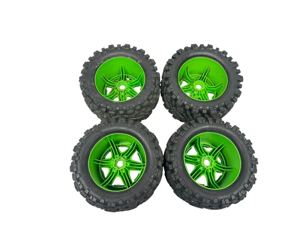 Traxxas E-Revo VXL Talon EXT Tires W Green 17mm Wheels Set Of 4 #14810. Condition is “Used”, tires have great tread and wheel hex are perfect. Please Refer to pictures. Standard shipping will be used for shipping. Don't miss our selection of other rc items. Orders ship within 24hrs (Excluding weekends). All Rc Products are sold as is.