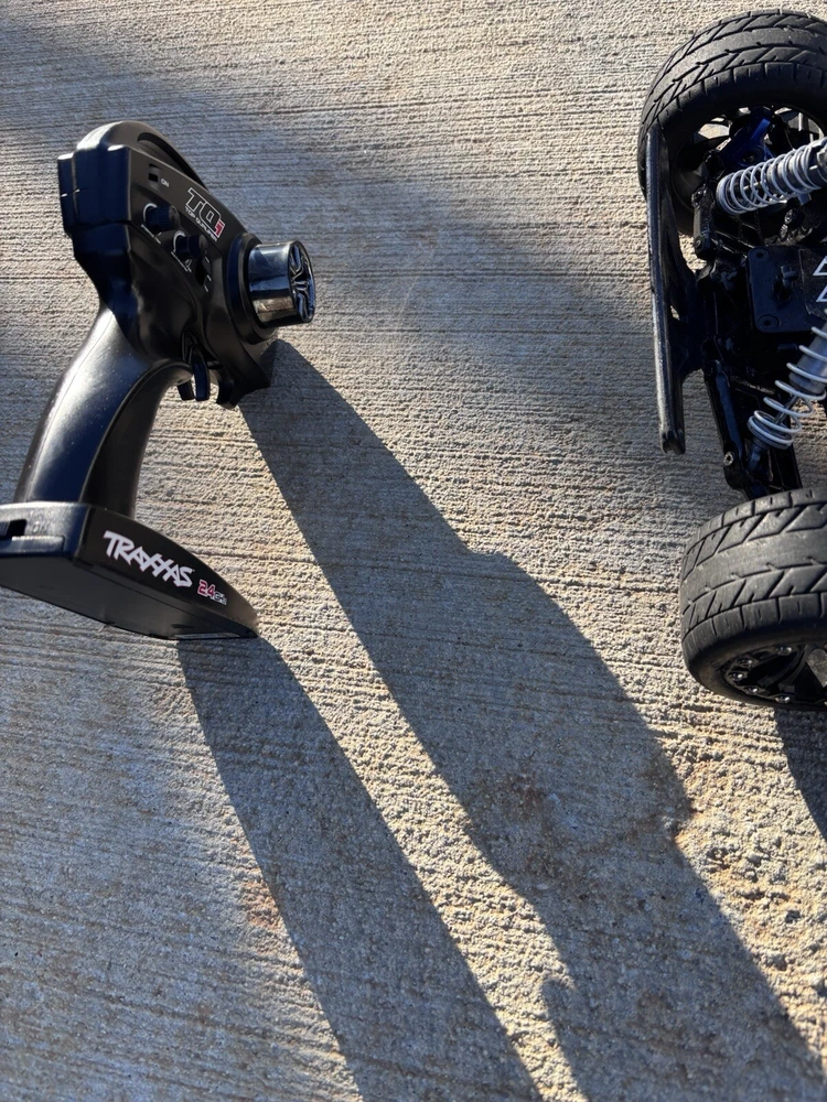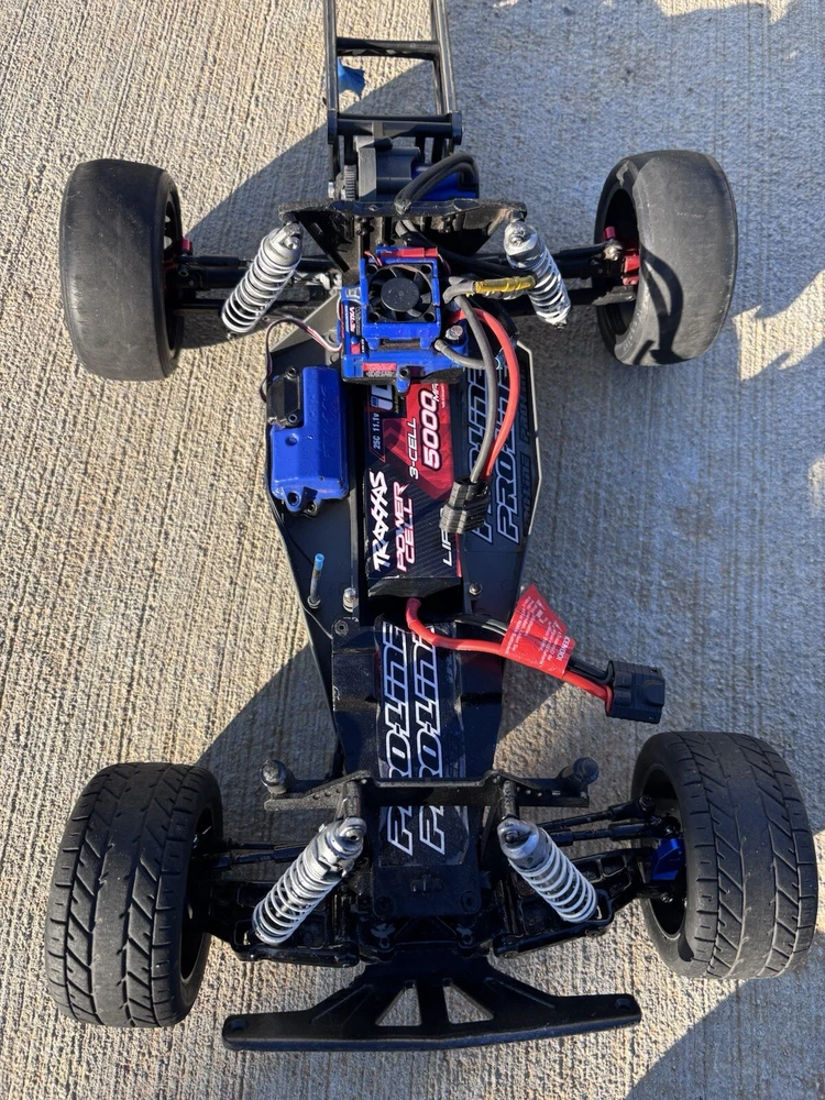 Traxxas Rustler Drag really fast runs perfectly fine noting wrong no issues or noting a LOT of upgrades parts added and comes with a 3s battery.