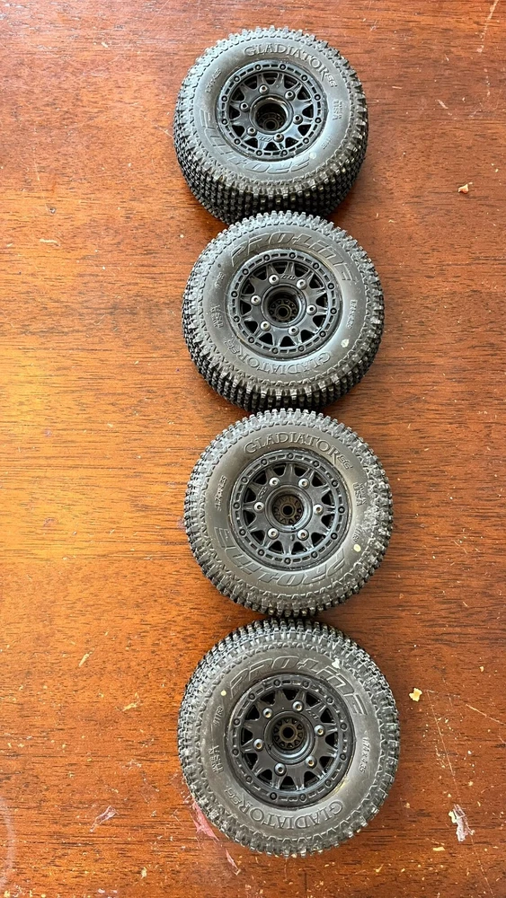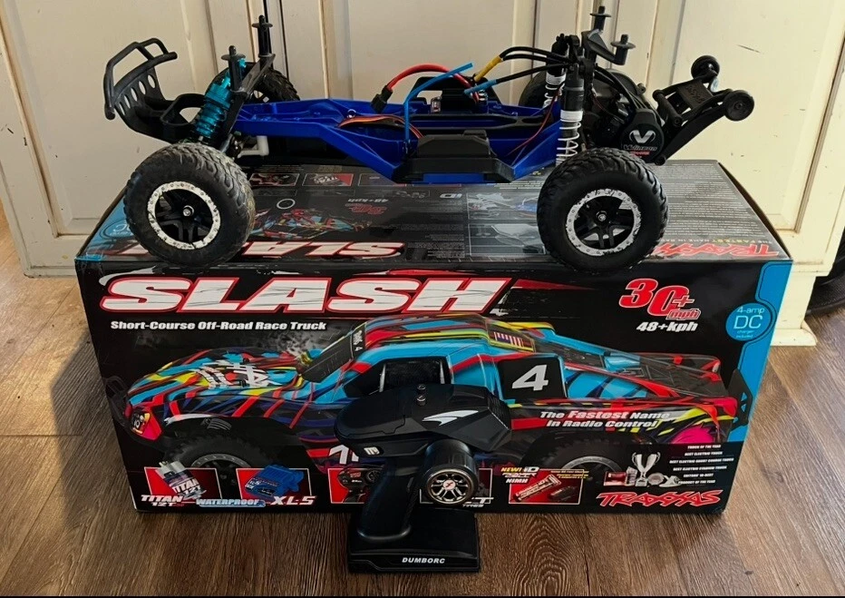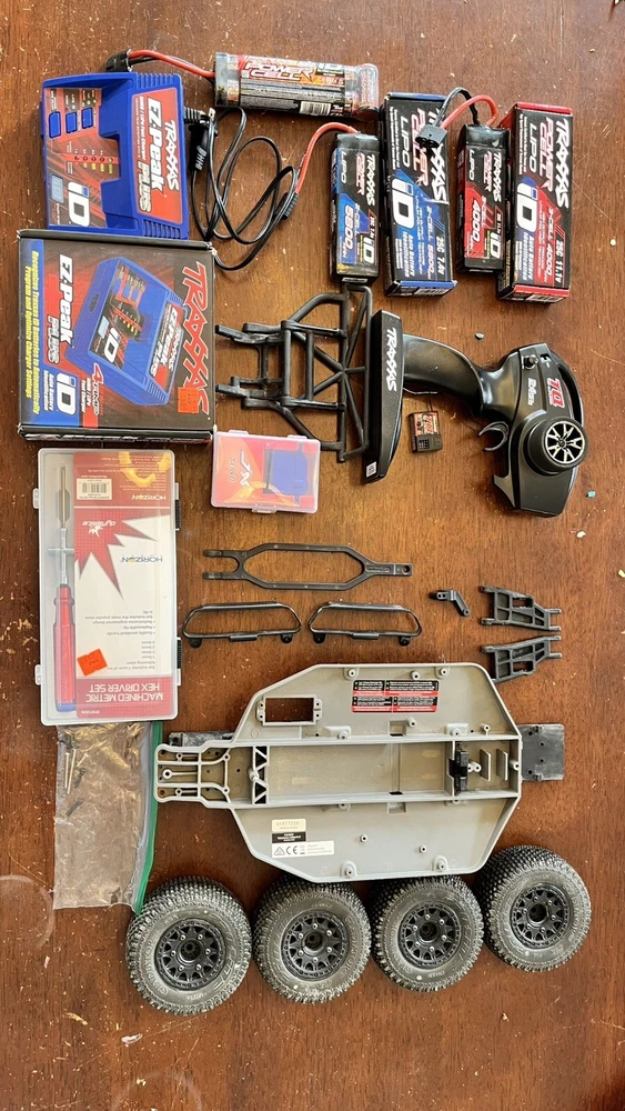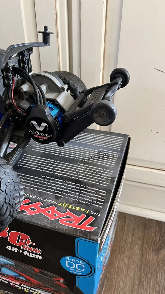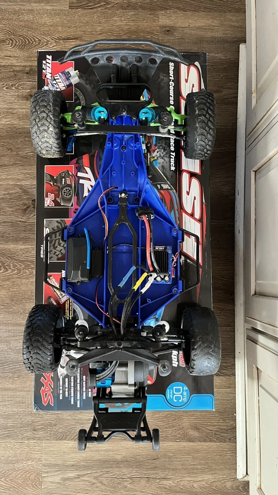 Used short course RC car, great for ages 12+. Has everything you need to charge and drive. Widely recognized as one of the most durable cars out there. Has roughly $400 of upgrades and spares. Upgraded motor makes it 60+ mph. Upgrades include: low center of gravity chassis, RPM front arms, aluminum front shocks, RPM rear hub carriers, steel driveshaft on one side, metal geared servo, Dumbo RC radio for extended range, Traxxas wheelie bar, and motor heat sink/fan. Spares include: Chassis, arms, radio and receiver, Proline Gladiator dirt track tires, servo. Comes with a 2 cell LiPo, 3 cell LiPo, and 7 cell NiMH battery and EZ-Peak plus charger. Includes tool set.
