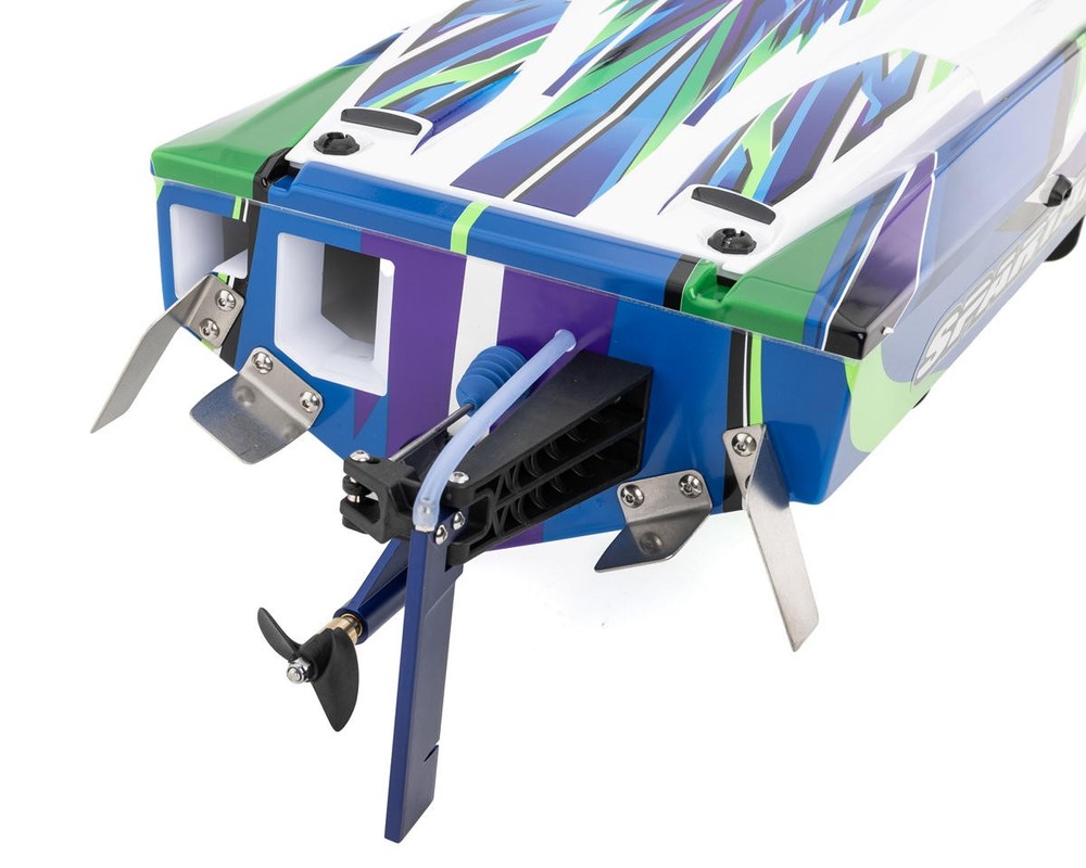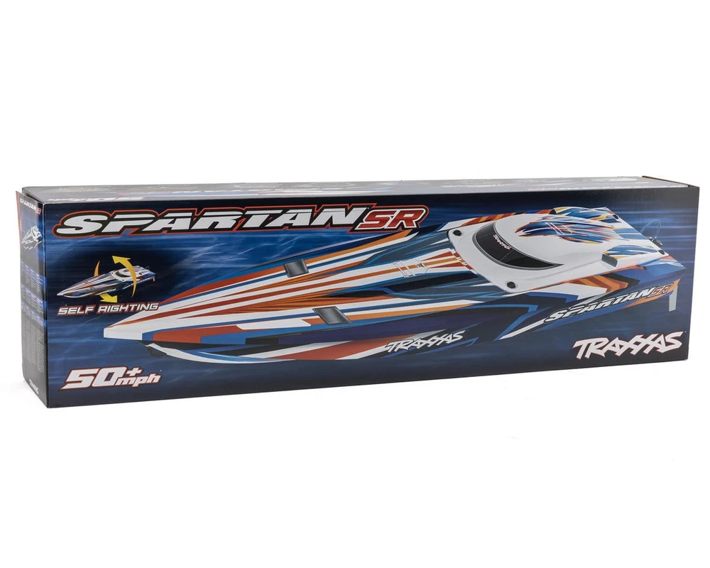 Self-Righting Race Boat with High-Powered Thrills The Traxxas® Spartan® Self-Righting (SR) 6S High-Performance Brushless RTR Race Boat is engineered for intense speed and precision on the water. Capable of reaching thrilling high speeds, this boat provides thrilling performance with unmatched handling. Designed with Traxxas' self-righting technology, the Spartan SR ensures that even if it flips, you'll be back to full-throttle racing in seconds. This race-ready boat is perfect for enthusiasts who want a durable, high-speed, and fun RC boat experience on any water surface. About the Spartan SR Self-Righting Abilities One of the standout features of the Spartan SR is its self-righting ability. This allows the boat to flip back over automatically if it capsizes, ensuring you're never stuck in the middle of the water waiting to recover your boat. Self-righting adds a level of confidence for all skill levels, making it possible to fully enjoy the boat's performance without fear of losing control. Just hit the throttle, and the Spartan SR does the rest, keeping you in the action. Razor-Sharp Handling The deep-V vacuum-formed ABS hull design of the Spartan SR combines speed with agility for a smooth and controlled ride. The advanced electronics layout and centrally located battery tray improve handling by balancing the boat's weight, keeping it stable at high speeds. Whether cutting through waves or making sharp turns, the Spartan SR delivers superior handling, ensuring no-lift turns and precise maneuvering in any condition. Advanced Power System & Electronics The Spartan SR is powered by the Velineon® 540XL Marine 1850kV Sensorless Brushless Motor, delivering high-speed performance and powerful acceleration. Paired with the VXL-6s™ Marine Electronic Speed Controller (ESC), this setup transforms LiPo power into extreme speeds. The electronics are strategically positioned for optimal performance and stability, while the 2056 Waterproof Servo ensures reliable control even in choppy or harsh water conditions. The entire system is designed to withstand the elements, offering smooth, consistent power output and extreme durability on the water. Features: Self-righting hull for instant recovery Stainless steel turn fins for sharp cornering Deep-V hull for superior stability Equipped with the VXL-6s™ Marine Brushless ESC Waterproof electronics for durability and longevity High-performance propeller for quick acceleration Centrally positioned battery tray for improved balance Lightweight and durable vacuum-formed ABS construction Flood chamber for fast self-righting Powerful Velineon 540XL Marine 1850kV Sensorless Brushless Motor Includes: (1) Spartan SR 6S High Performance Brushless RTR Race Boat (1) Velineon 540XL Marine 1850kV Sensorless Brushless Motor (1) VXL-6s Marine ESC (1) 2-Channel TQi™ 2.4GHz Transmitter (1) 5-Channel 6533 2.4GHz TSM® Receiver (1) High-torque Waterproof 2056 Servo (1) Boat Stand Miscellaneous Maintenance Tools Product Manual Needed To Complete: (4) AA Batteries for Transmitter (2) 7-Cell NiMh or 2S-3S LiPo Batteries (14.8-22.2V) (1) Compatible Battery Charger Specifications: Hull Type Deep-V Hull Material Vacuum-Formed ABS Hull Length 36.5in (927mm) Overall Length 40.8in (1037mm) Beam 9.5in (243mm) Height 7.2in (183mm) Propeller 2-Blade (59mm Pitch) Propeller Length 1.65in (42mm) Skill Level 2 Power Source Electric Battery Tray Dimensions (LxW) 8.58x2.76in (218x70mm) Battery Connector Traxxas iD® Motor Connectors 5.5mm Bullets Assembly Level RTR* *Tech Note: Ready-to-Run models come equipped with all electronics and include the transmitter needed for use. Please check the "Needed To Complete" above to make sure you have everything you need to get out and enjoy your RC model. Manuals: User Manual About Us | View Store