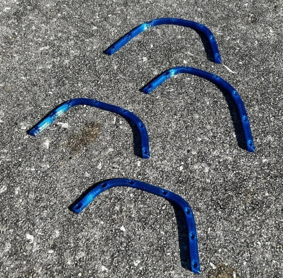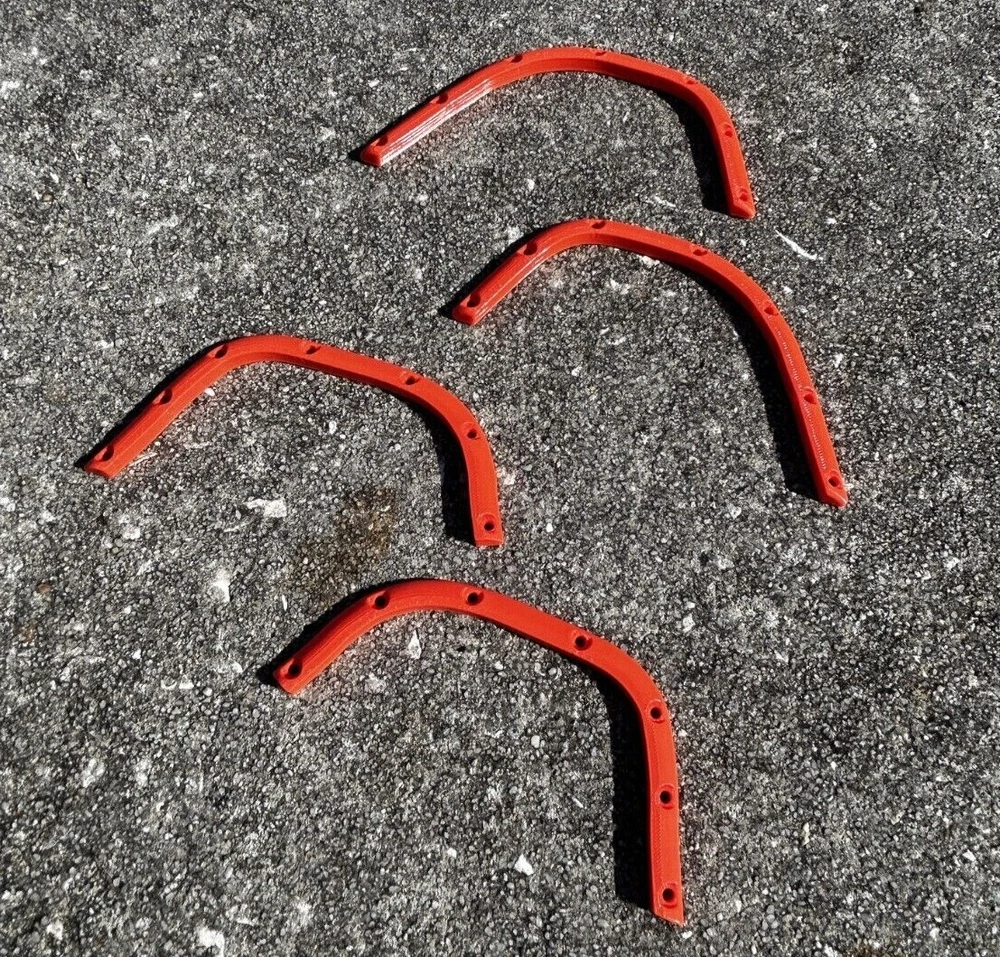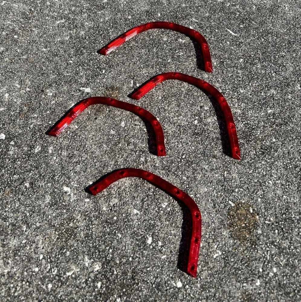 Stampede 2WD Body Fender Flares (Set of 4) Part Number: MS1001 Full set of Fender Flares for the Stock Body of the Stampede 2WD. These are made out of a strong and flexible material and will strengthen the edges of the body where cracks start to form over time. Stainless Steel hardware included. You will only need to provide the drill and 1/8” drill bit for the mounting holes. The best way I have found to install these is to line up the Fender Flare, then drill out the first hole. Place a bolt with a nut to tighten it down. This helps lining it up along the body for later holes. Next, skip the next one or two and drill out another hole. Bolt that one down and then keep going, skipping a couple just to get the main part lined up and mounted. Then go back and drill out the rest of the mounting holes. If you have any questions, please feel free to message me. Colors Available: Black, Red, Blue, Green, Orange, White Compatible With: Stock Stampede 2WD Body Check out the rest of my shop to find more R/C related products! Made with top quality materials that will last through your hardest bash sessions! Made in the USA!