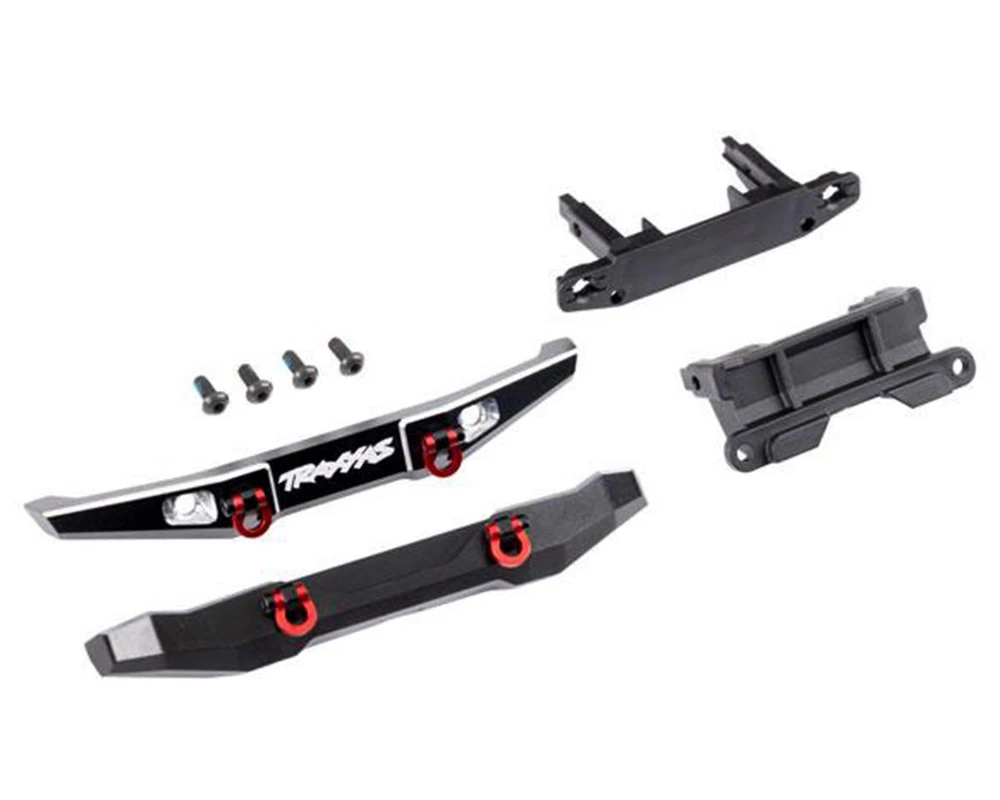Bumpers Overview: The Traxxas TRX-4M Ford Bronco Aluminum Front and Rear Bumpers Set is the perfect upgrade for your TRX-4M Land Rover Ford Bronco platform. These high-quality aluminum bumpers are CNC-machined to ensure durability and strength, enhancing the scale realism of your Ford Bronco. With a sleek black anodized finish and machined edges, these bumpers not only look great but also provide superior protection against rough terrains. This bumper set includes red-anodized D-rings for added style and functionality, allowing you to tackle challenging obstacles with confidence. The high-clearance design ensures that the bumpers won't get hung up on rocks or debris, making them an essential addition for any serious crawler enthusiast. Note: This set is only compatible with TRX-4M with the Ford Bronco body. Features: CNC-machined aluminum construction Enhances durability and protection Black anodized finish with machined edges High-clearance design to avoid obstacles Machined light buckets for optional factory LED lights Functional winch fairlead and D-ring shackles Bosses for optional trailer hitch mounting Includes: (1) Aluminum Front Bumper with Mount (1) Aluminum Rear Bumper with Mount (4) Button Head Screws About Us | View Store