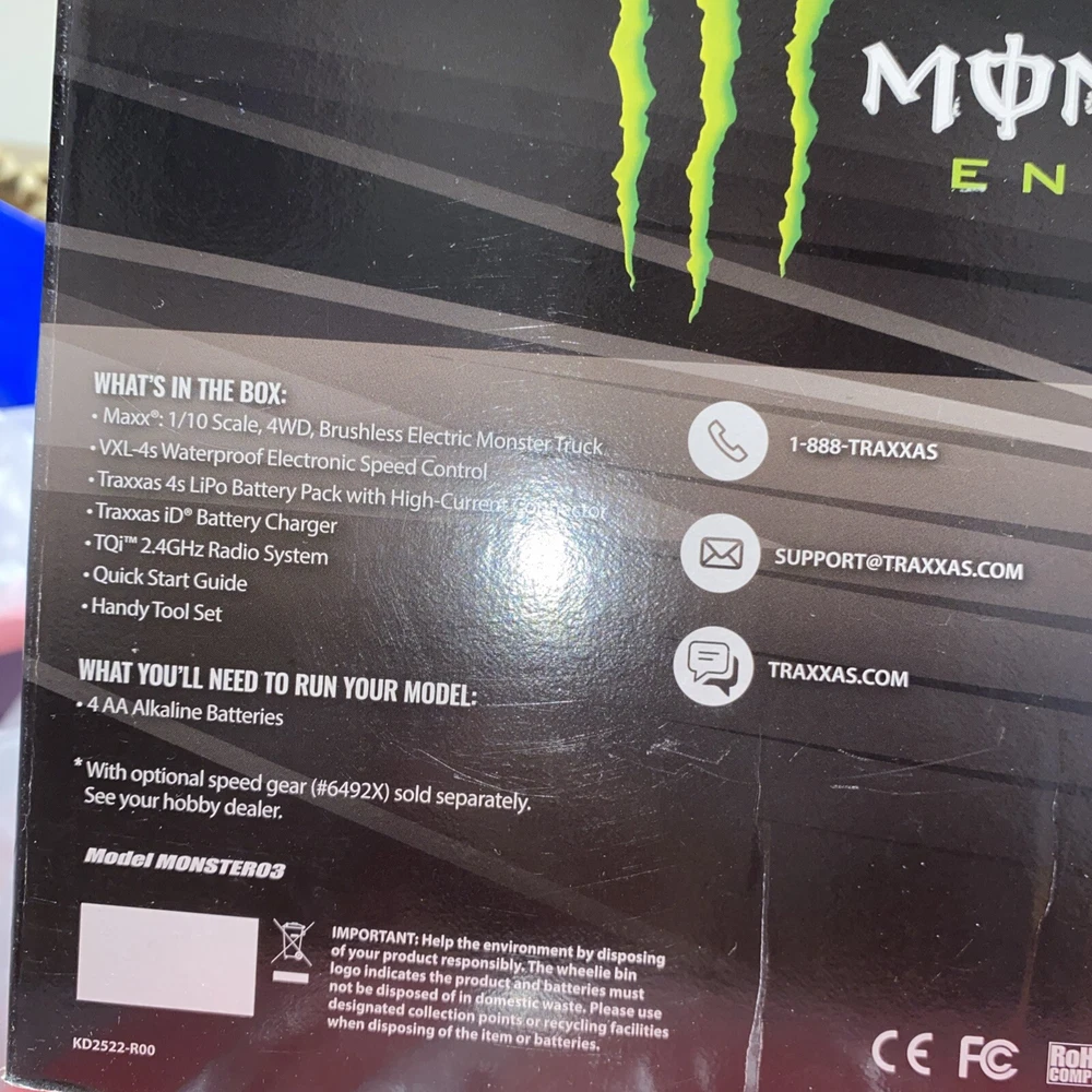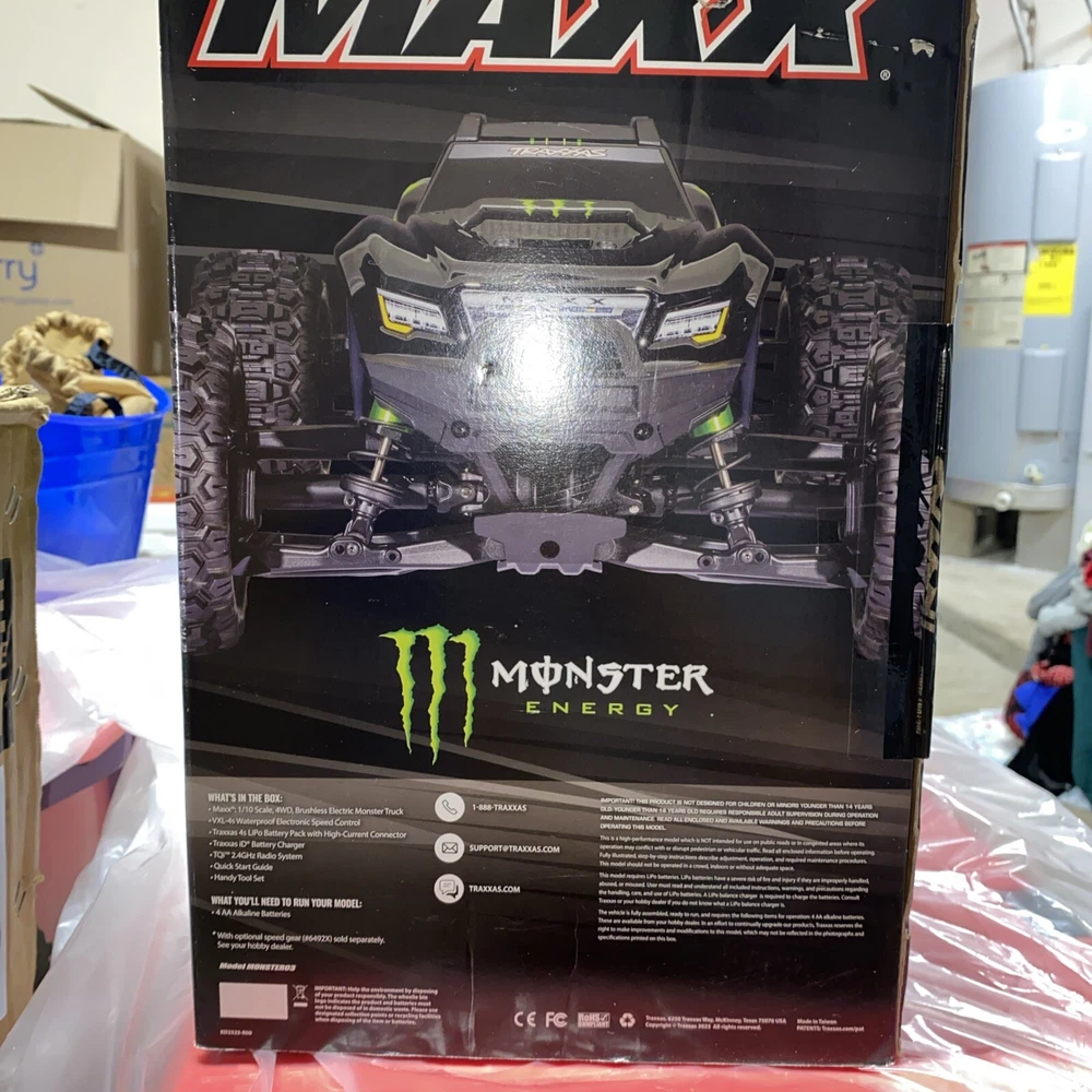 New box still have original seal Take your RC car game to the next level with the Traxxas V2 Wide Maxx 1/10 4WD Brushless Monster Energy. This high-performance car is equipped with a powerful brushless motor and comes with a battery and charger, so you can start racing right out of the box. Its durable construction and advanced features make it compatible with 1:10 scale RC accessories, making it a versatile choice for all your RC needs. With its sleek design and top-of-the-line components, the Traxxas Maxx 1/10 is perfect for hobbyists and experienced racers alike. Whether you're looking to upgrade your existing car or start fresh, this monster energy-powered car is sure to impress. So why wait? Order yours today and experience the thrill of racing like never before!