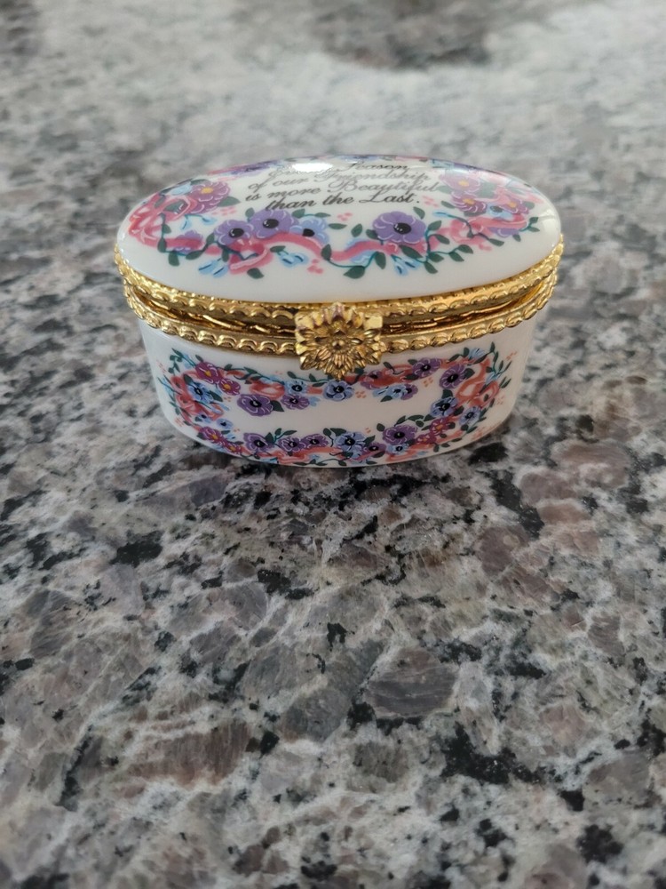 $ 7.06Vintage Italian Alabaster Heart Trinket Box with Floral Design