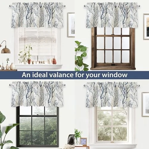 Return Policy Fast Delivery Trusted seller Tree Branch Linen Lined Valance Double Layer Thermal Insulated Room Darkening Blackout Valances 3 Inch Rod Pocket Short Window Valance for Living Room Bathroom 52 Inch by 14 Inch Blue Product Description PACKAGE INCLUDES: One valance. Made of durable linen blend fabric, imported. STYLE: Tree branch window curtain valance has a modern aesthetic and features an abstract ink painting pattern to create an elegant and comfortable atmosp. Background color is off white. The valance provides an easy and inexpensive way to add color and style to any room of your home, perfect for living room, bedroom, family room, dining room, kitchen, farmhouse, bathroom, girls room. UPGRADED VERSION: This linen blend valance, with its durable material, blocks annoying light, prevents harmful UV rays from reaching your floors and furniture, updates the look of your home instantly in a unique way. It is extremely versatile and will liven up any home decoration. Hang it in your bedroom, living room, dining room, kitchen, or any room that needs that perfect finishing touch. SIZE & HEADER TYPE: 52”WX14”L+2”HEADER. 3” Rod Pocket slides easily onto your curtain rod for quick installation. CARE INSTRUCTIONS: Machine Wash Cold, Gentle Cycle, only non-chlorine bleach when needed, tumble dry low, cool iron if needed. Shipping Returns Payment Shipping Shipping is FREE to all addresses other than APO/PO boxes in the lower 48 states. All our stock ships from US-based warehouses. Shipped via USPS or UPS (depending on location and package weight) Unless stated otherwise, all orders will ship within 24-72 hours of your payment being processed. Check our feedback to see the great reviews of FAST shipping we offer. Returns Seller does not accept returns Payment We currently accept payment via eBay managed payments only. Once payment is cleared, we will dispatch your shipment within 1-3 business days. Please refer to the "Shipping" tab for more information regarding shipping speed to your destination.