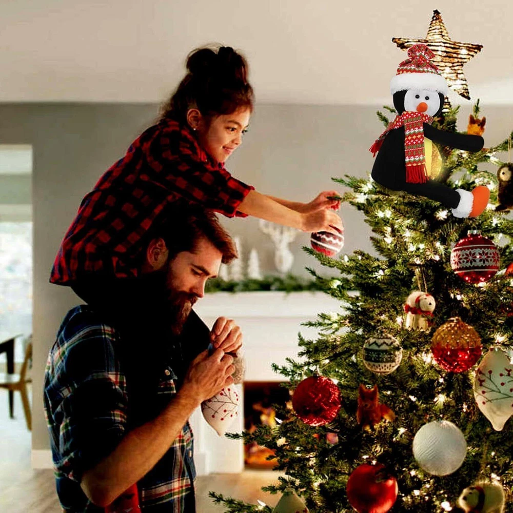 CONTACT US DIRECTLY FOR FREE & PREPAID RETURNS Tree Topper with Lights-funny Christmas Tree Topper Lighted Penguin Tree Topper Tree Topper with Lights-Funny Christmas Tree Topper Lighted Penguin Tree Topper Description Style Funny Color Snowman Tree Topper Item Dimensions D x W x H 5.5"D x 10"W x 17"H Material Knit,Cotton and Flannel Material Type Knit,Cotton and Flannel Theme Animal Occasion Christmas, New Year Style Name Funny Cute Christmas Tree Topper:Adorned with red and white scarf and featuring 10 led warm fairy lights, this cute snowman tree topper will glow through the winter night.Lighting up the top of Christmas tree,it creates a joyful and festive ambiance, making it a funny and charming addition to your holiday decor. Tree Topper with Lights: Crafted with excellence and made from the highest quality materials, this funny Christmas tree topper is designed to be of the ulmost durability. Each part is carefully hand-stitched, its hollow structure ensures a lightweight tree topper decoration,making it suitable for all types of Christmas trees and long-lasting performance. Battery Operated Tree topper with Timer: Our Xmas tree topper is powered by 2 AA batteries (not included), providing you with the convenience to place it anywhere without the need for a nearby plug socket,switch to the timer position activate 8 hours lighting and 16 hours off automatically,no worry about forgetting to switch off, energy saving helpful. Tree Toppers Christmas Decorations: unique snowman tree topper is the extraordinary choice for Christmas tree ornaments! Not only does this unique lit tree topper enhance the look of your Christmas tree, but it can also be placed directly on your dining table, fireplace, mantel or used as wine bottle hugger or curtain tie to create a fun and joyful atmosphere during this holiday.It makes a sweet and cute gift for family, friends or colleague. REVIEWS The product came very well packaged. I'm very happy. thank you for everything. Seller strongly recommended. This is great! I definitely recommend! Product looks amazing Delivery was fast. Excellent seller, great communication. I advise everyone
