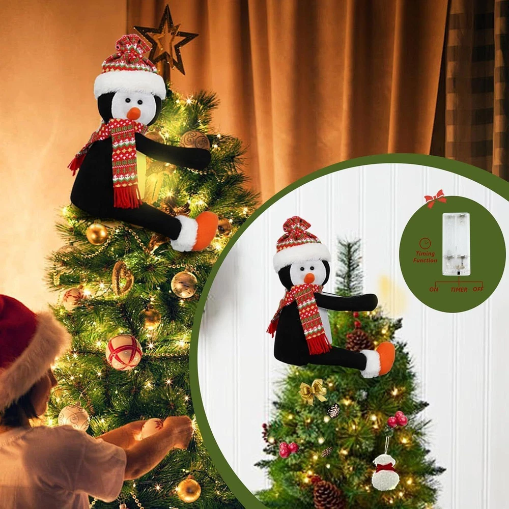 Tree Topper with Lights-funny Christmas Tree Topper Lighted Penguin Tree Topper