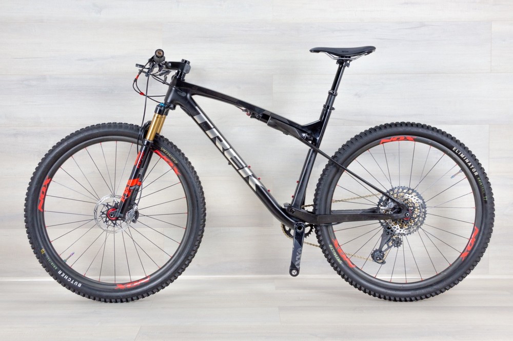 Trek Supercaliber 9.9 GEN 1 Sram XX1 AXS - X-Large •Material - carbon •Brakes - Shimano XTR hydraulic •Brand - Trek •Model - Supercaliber 9.9 XX1 •MSRP - 10499$ •Weight - 22.8lb •Cassette - SRAM Eagle Gold 10/52 •Chainrings - SRAM eagle 34T •Charger - yes •Components group - SRAM XX1 AXS 12sp •Crank - Sram XX1 175mm carbon •Drivetrain - 1x12 •Fit Range - 5.11 to 6.4 ( approx ) •Fork - Fox 32 Step-Cast Kashmia gold coat •Fork travel - 100mm •Front derailleur - •Miles - 1200-1500 ( approximately and depending on the frame condition and components ) •Rear derailleur - SRAM XX1 AXS 12 speeds •Rear shock travel - 60mm •Seat post - FOX dropper seat post •Stem - Bontrager 90mm -9 •Tires - Specialized Butcher 2.3 front and Eliminator 2.3 rear •Wheels, material - NOX carbon rims, DT Swiss 240s hubs •Tubeless compatibility - ubeless •Handlebars - Bontrager RSL one piece carbon •Saddle - WTB •Mechanic notes: Pre - Owned, good shape. The bike like any MTB that sees real trail time, there are some cosmetic marks from regular use (showed on pictures).
